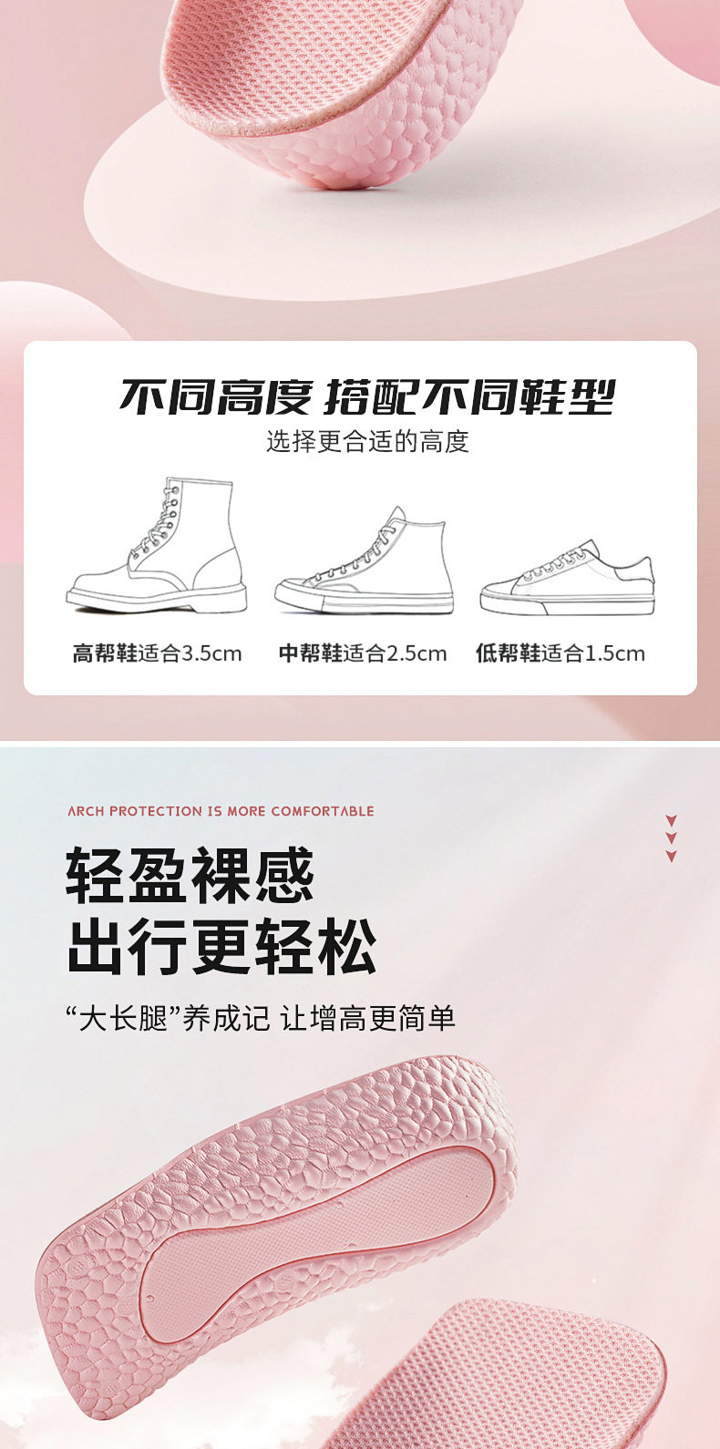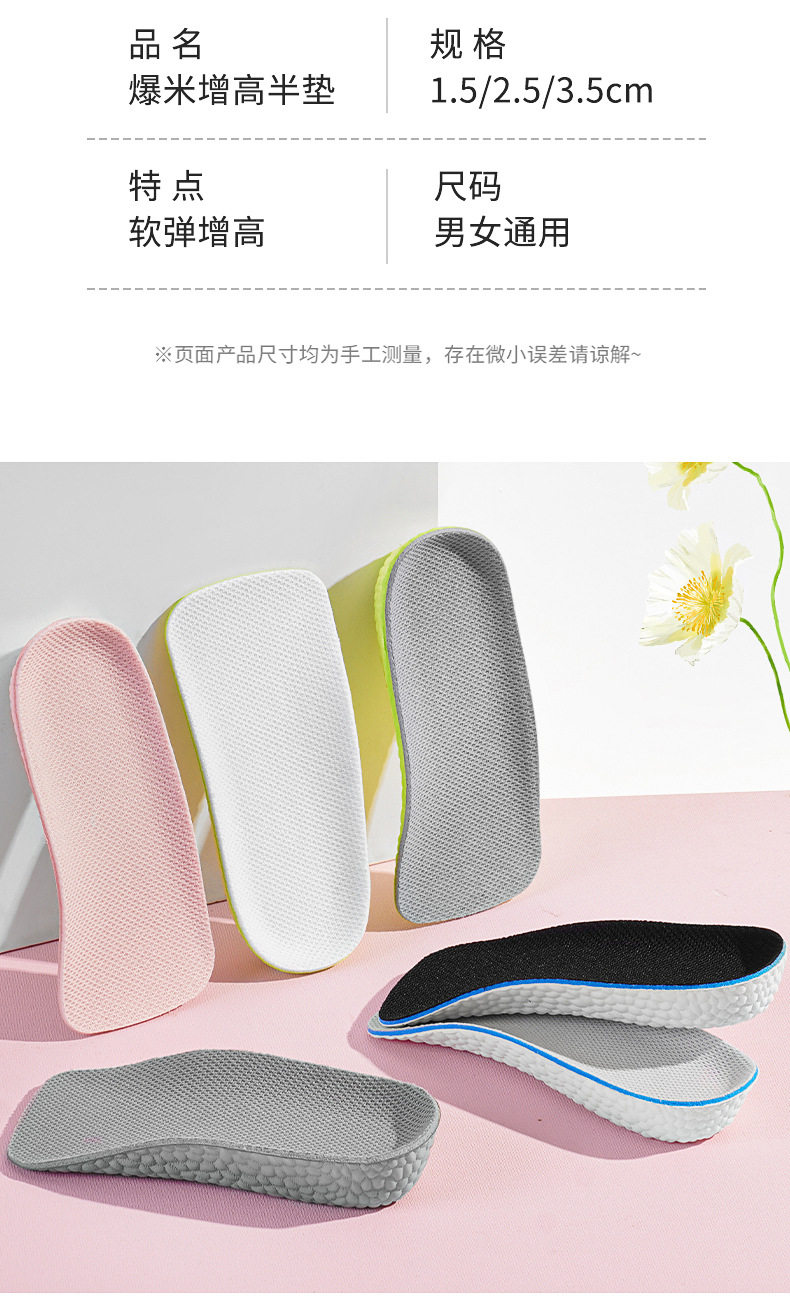 Стельки для увеличения роста, невидимые спортивные амортизирующие летние полустельки