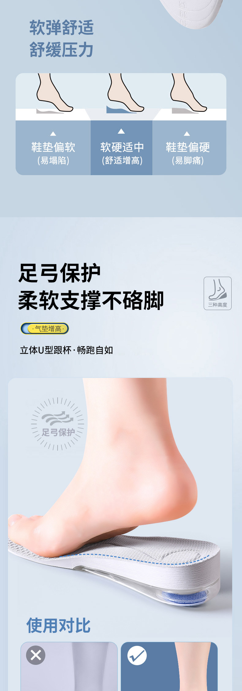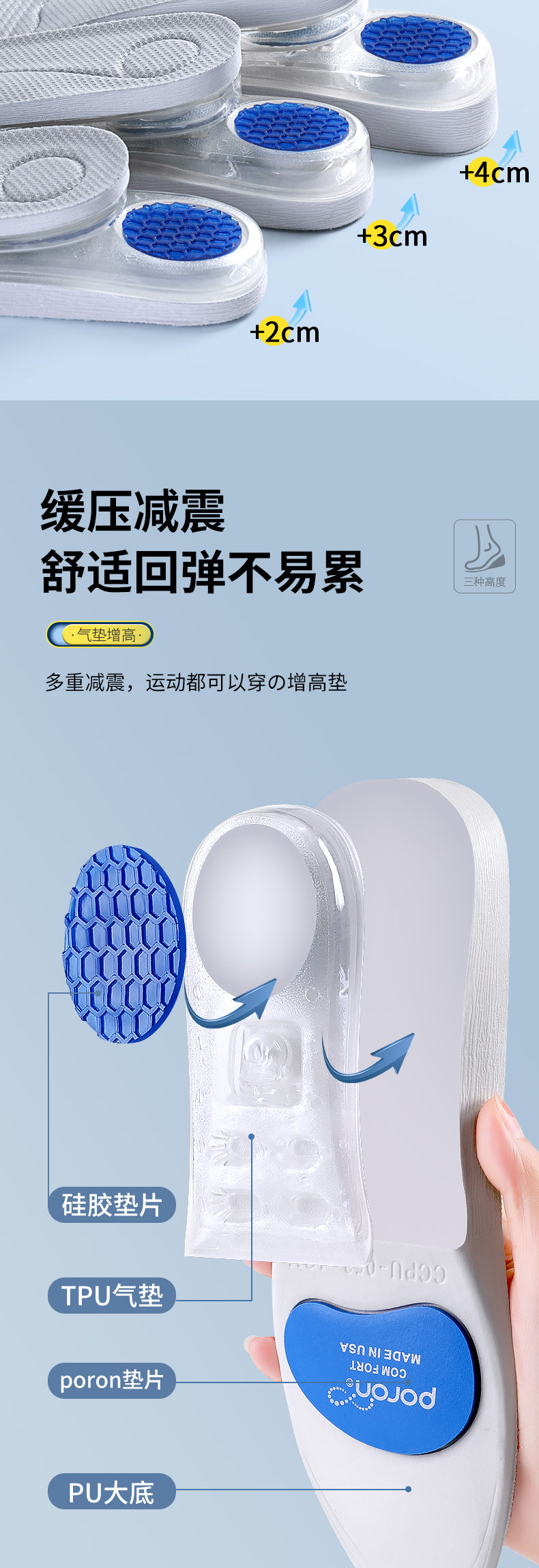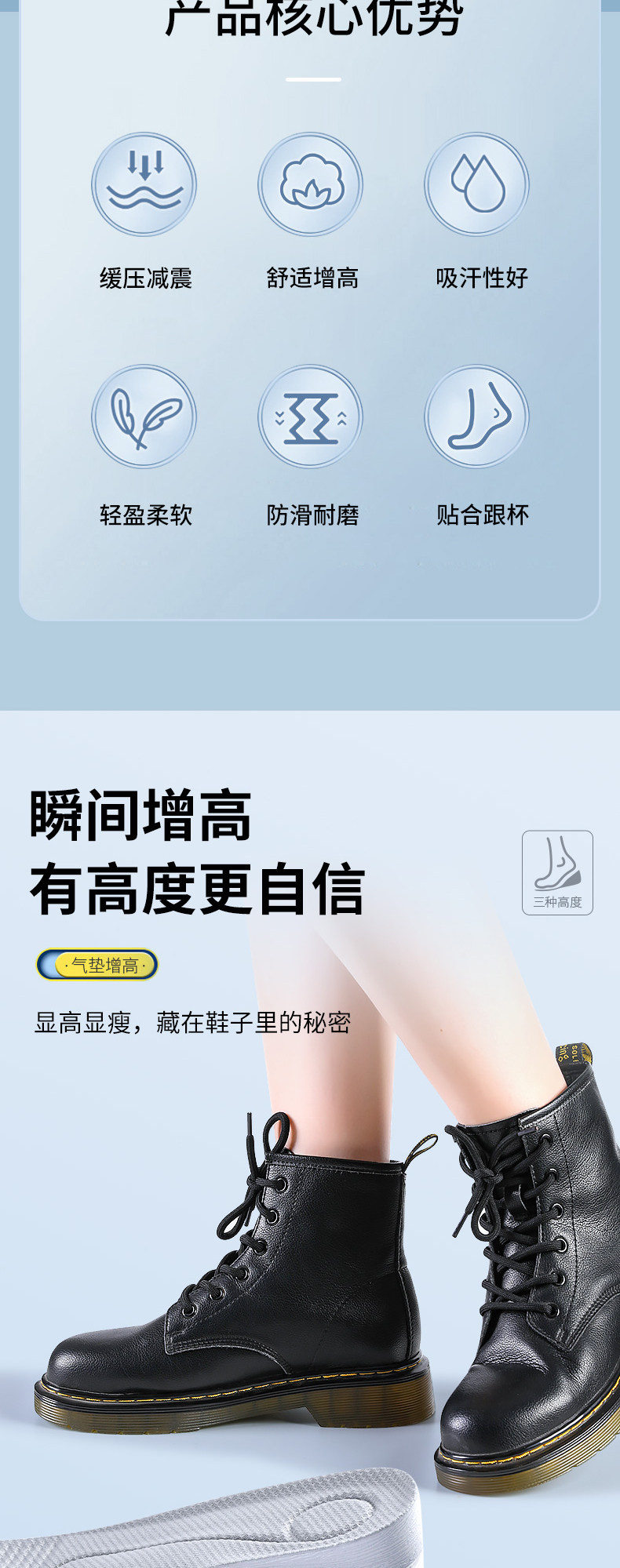 Кушон, мужские невидимые спортивные амортизирующие стельки для увеличения роста