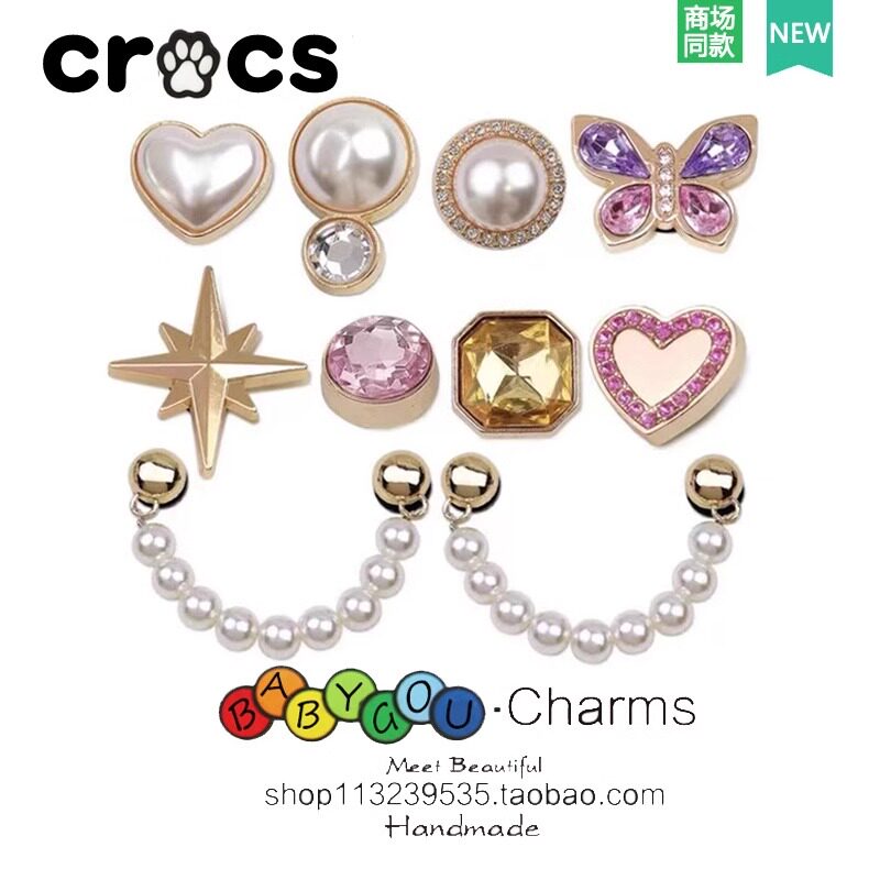 Crocs, металлическая пряжка для обуви, аксессуар, кроксы с бабочкой из жемчуга, DIY