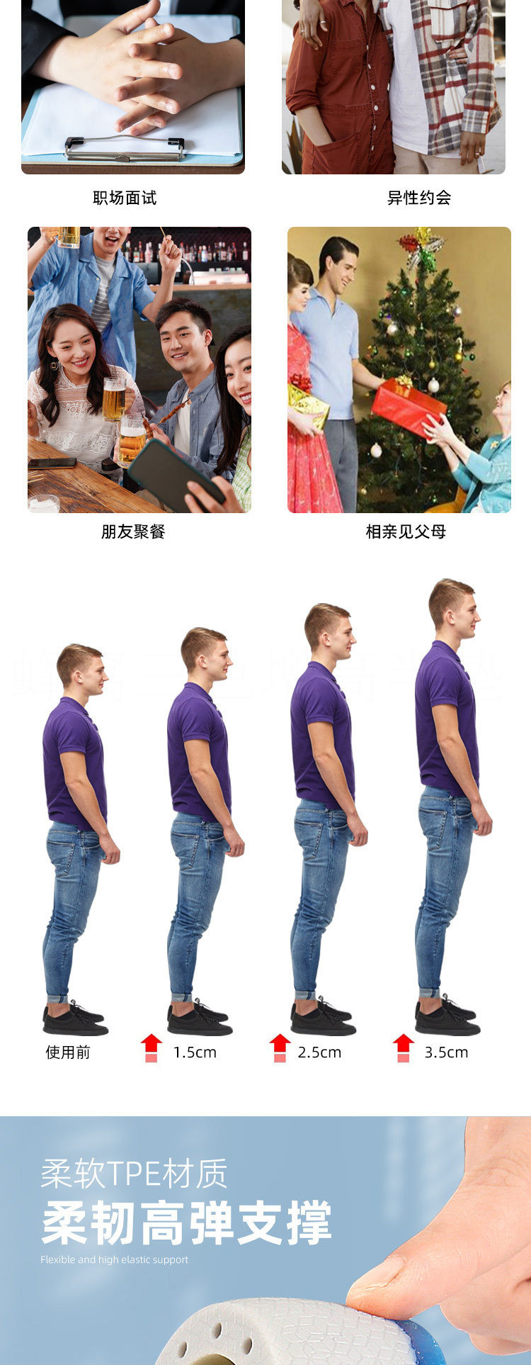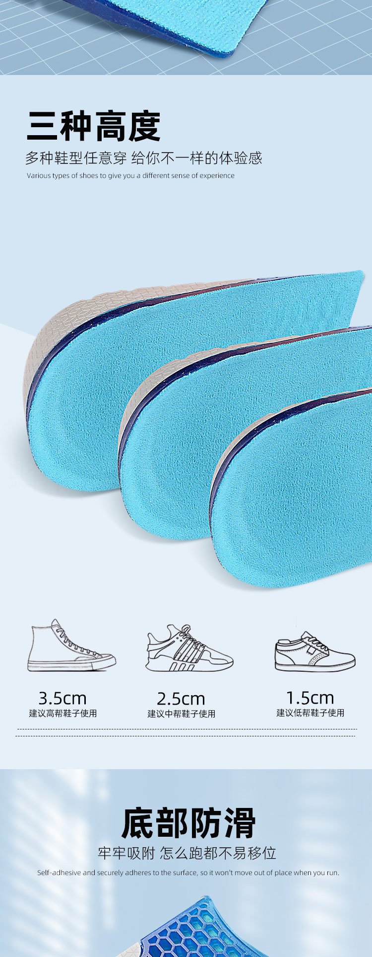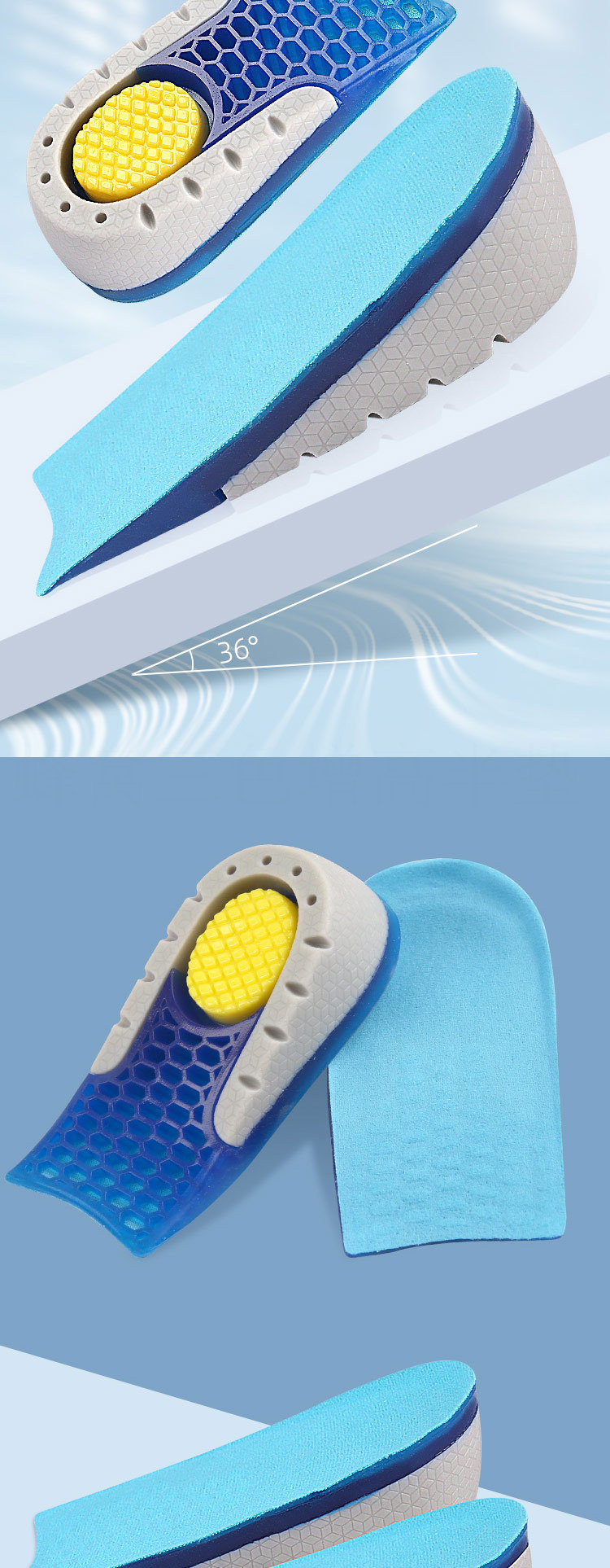 Мужские невидимые силиконовые стельки для увеличения роста, эластичные амортизирующие напяточники, полустельки