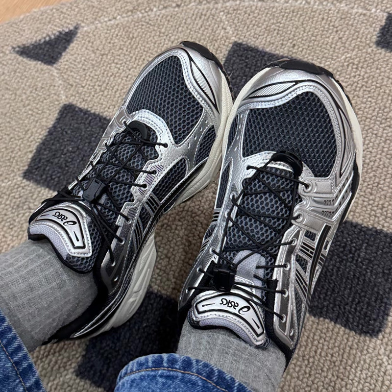 Адаптирован к Asics Gel-Kayano 14 Черные навыки серебра без ветра 1,5 мм обувь кружев