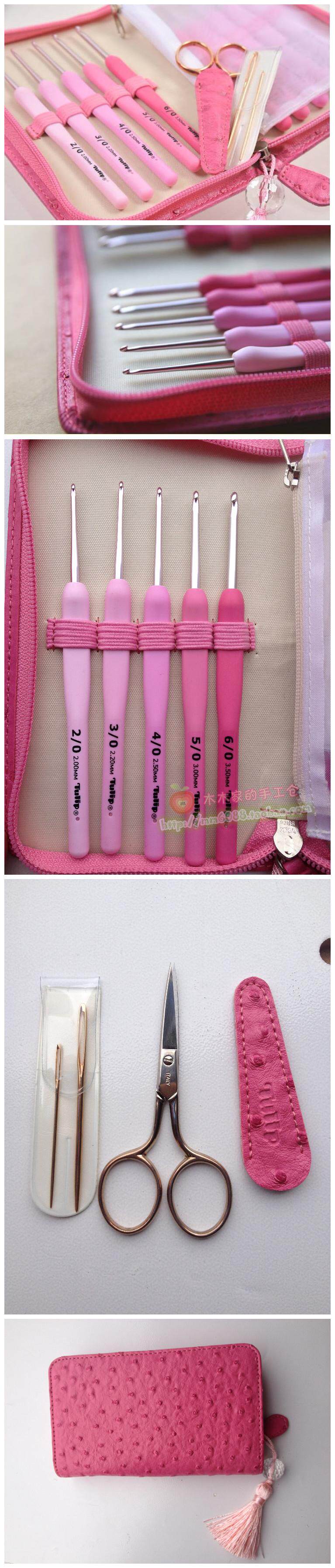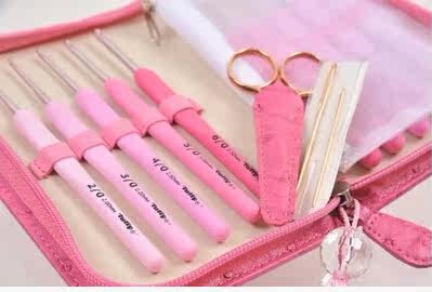 В комплект входят 10 розовых крючков/1 пара ножниц/1 набор ножниц в тон/2 спицы.