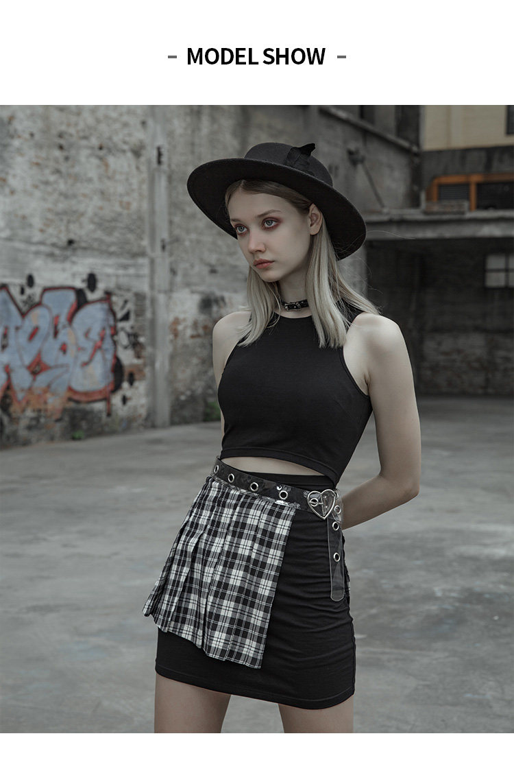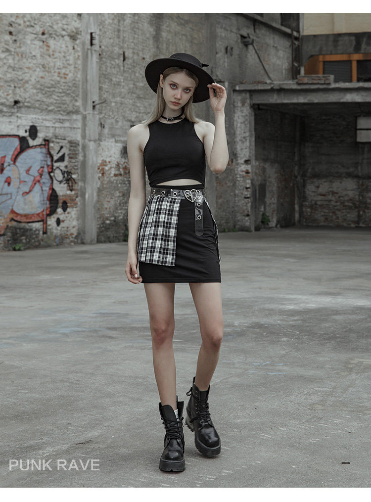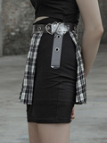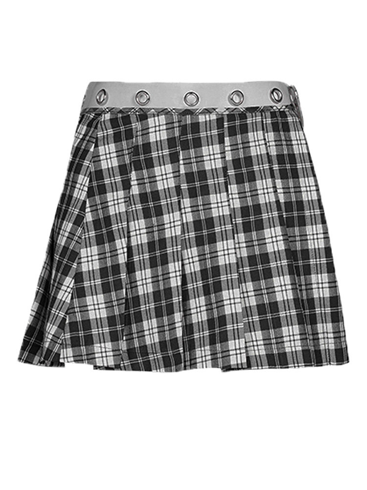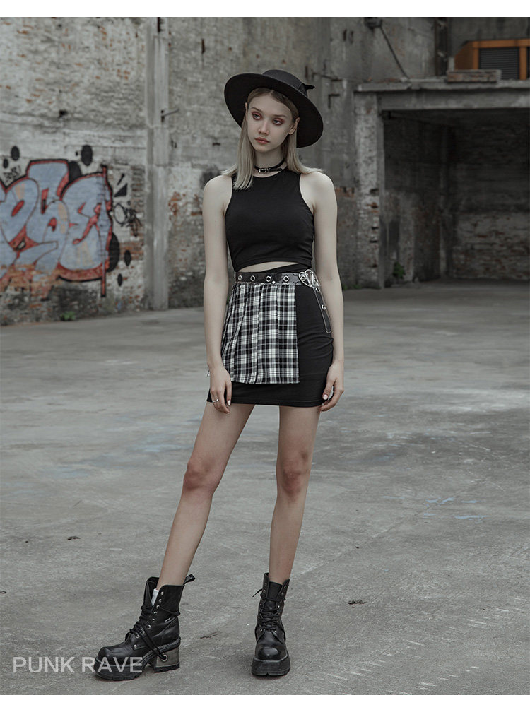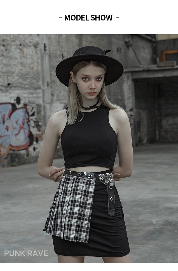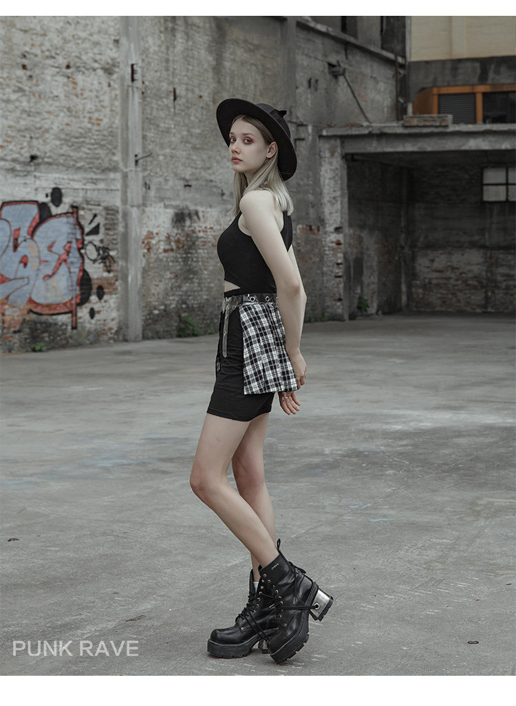 Punkrave Dark Cyber Style Плиссированная черно -белая клетчатая талия