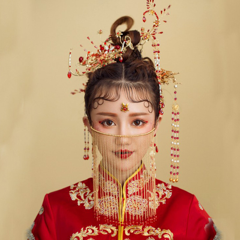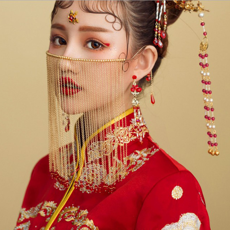 Ретро аксессуар для волос для невесты, маска с кисточками, китайский стиль