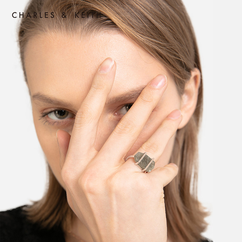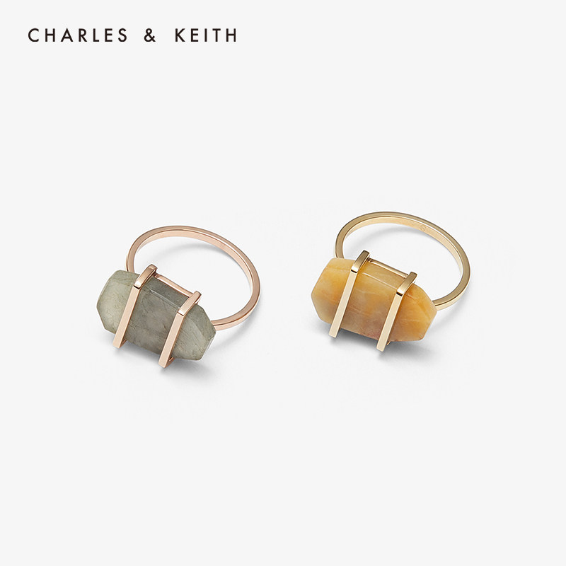 CHARLES&KEITH Аксессуар, металлическое украшение для ногтей, модное кольцо, с драгоценным камнем