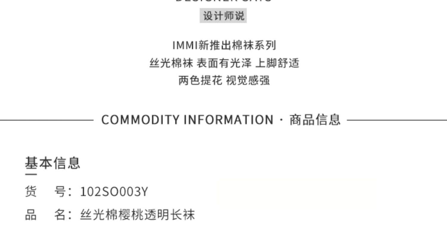 [Дизайнерский бренд Immi] 20 осень и зимний шелковый свет хлопковой вишня прозрачные чулки 102SO003Y
