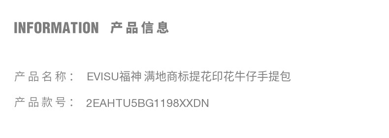 EVISU Fushen 2025 осень новая мужская жаккардовая джинсовая сумка торговой марки 2EAHTU5BG1198XXDN
