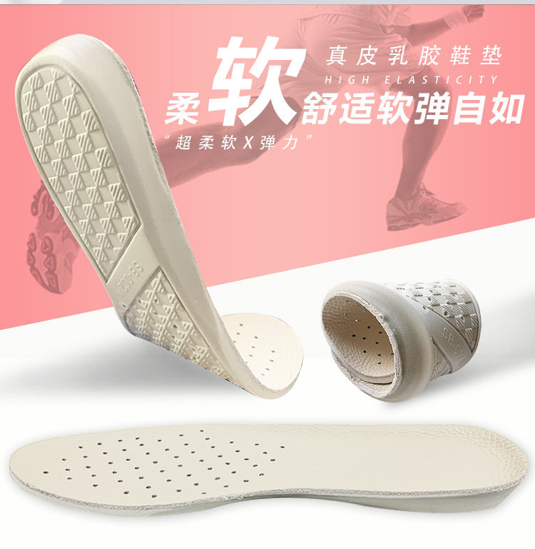Кожаные латексные летние дышащие амортизирующие стельки для увеличения роста, мягкая подошва, из натуральной кожи