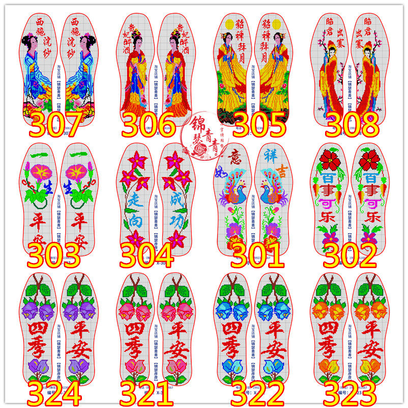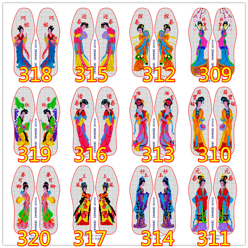 [12 штук] Jinse Qingqing 14ct xiaoge Cross Embrocery стельки рисуют китайскую четыре красоты двенадцать золотых плохих