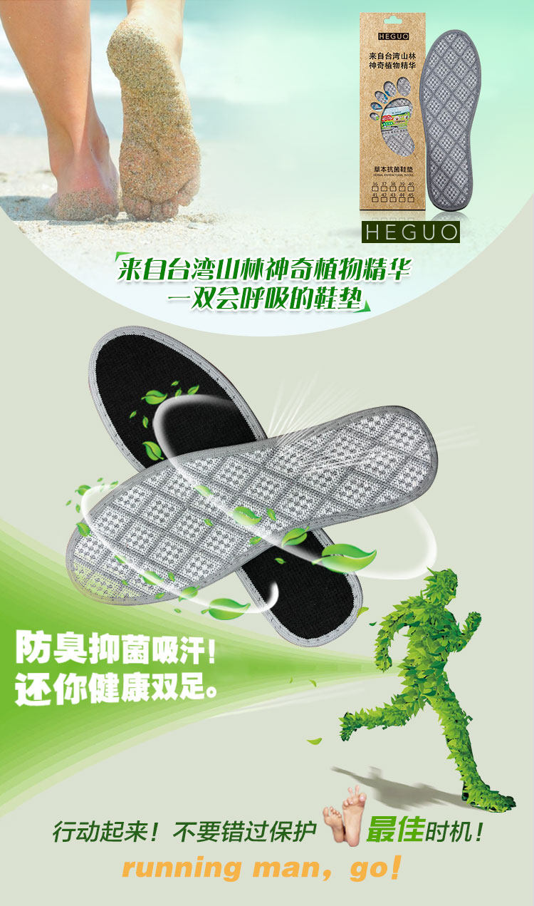 Травяная антибактериальная дезодорантная стелька на Тайвань Хегуо