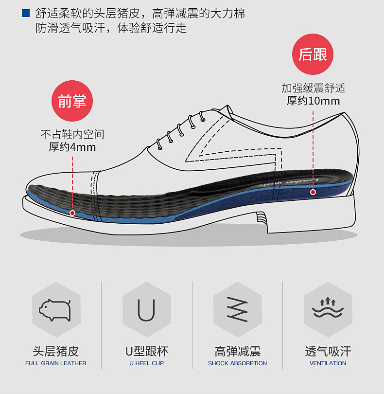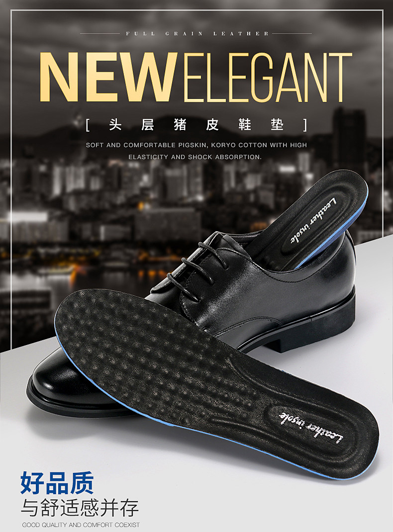 Мужские кожаные амортизирующие дышащие комфортные стельки, впитывают пот и запах, из натуральной кожи, мягкая подошва