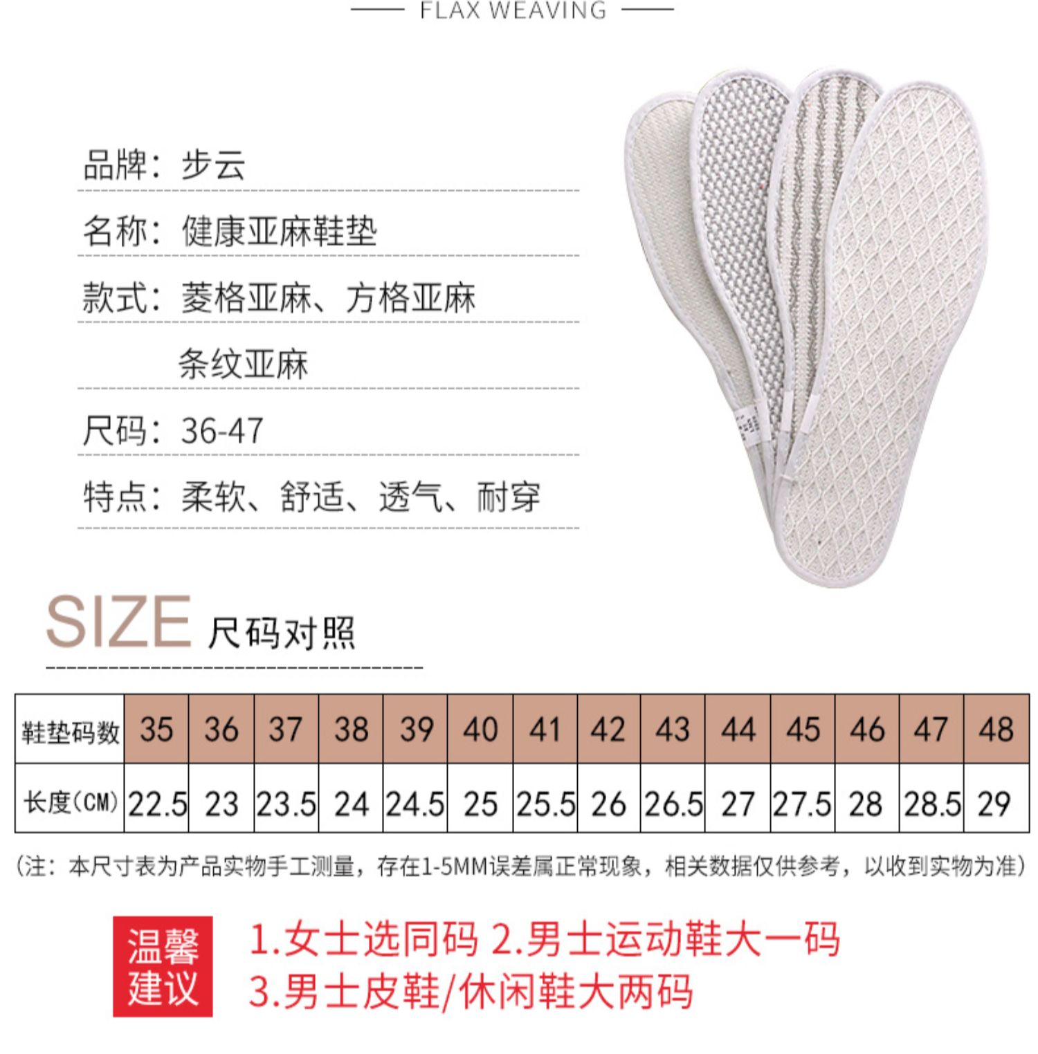 步云 Стельки подходит для мужчин и женщин, дезодорированная комфортная двусторонная спортивная обувь для кожаной обуви, впитывают пот и запах, из хлопка и льна