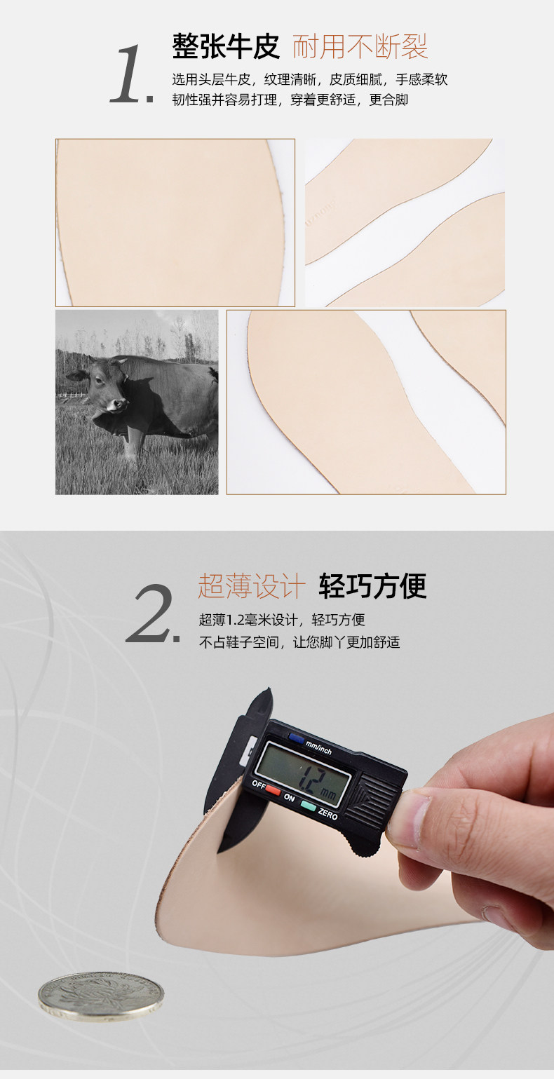 Кожаные спортивные ультратонкие стельки, 1.2mm, воловья кожа, впитывают пот и запах, можно стирать