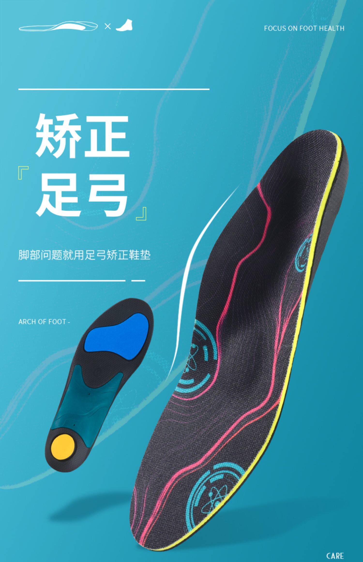 Плоские коррекционные стельки для ног. Высокий лук с высокой ногой поддерживает ногу ноги, чтобы перевернуть нижнюю ногу, артефакты с восьми -символами -ногами удобны и дышат.