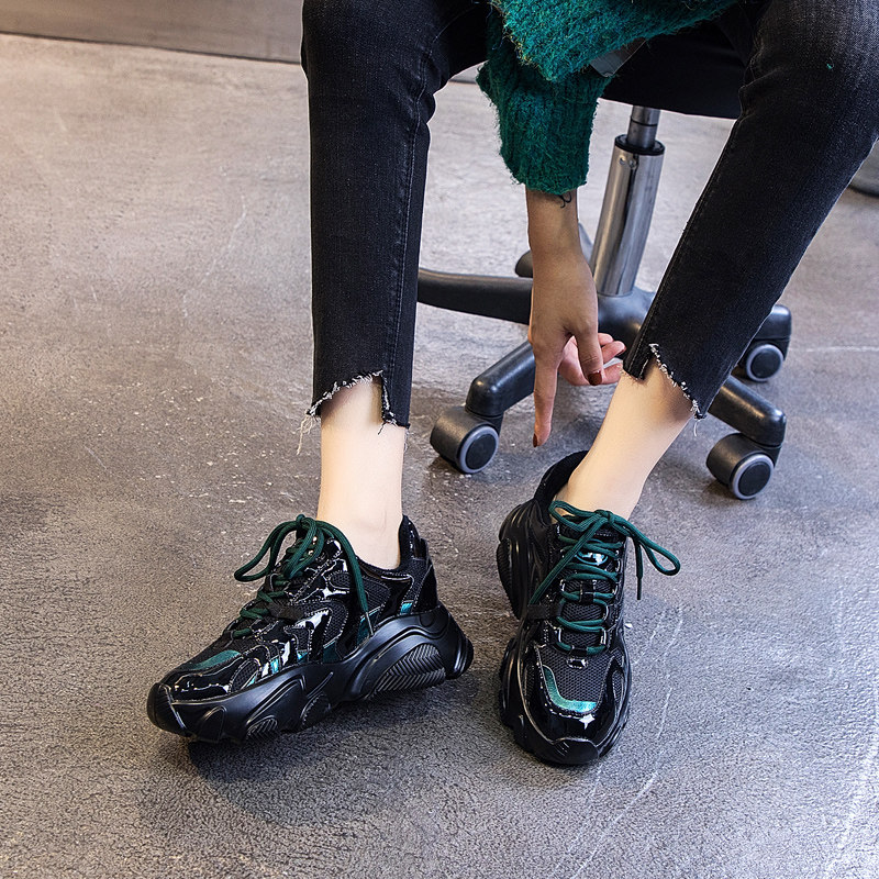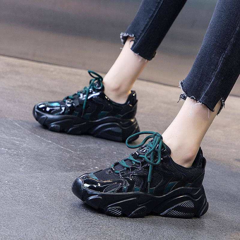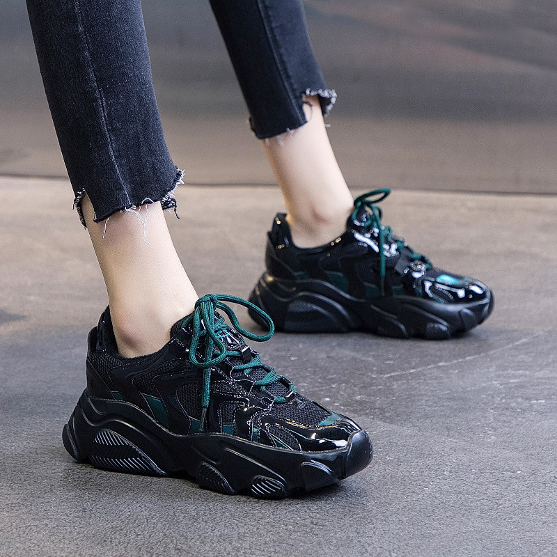 Черные женские туфли для папы, тренд весны 2023 года, новые модные интернет-знаменитости, универсальные повышающие кроссовки на толстой подошве
