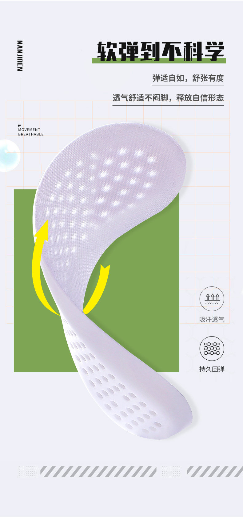 南极人 Дышащие амортизирующие комфортные стельки, впитывают пот и запах, для бега, мягкая подошва