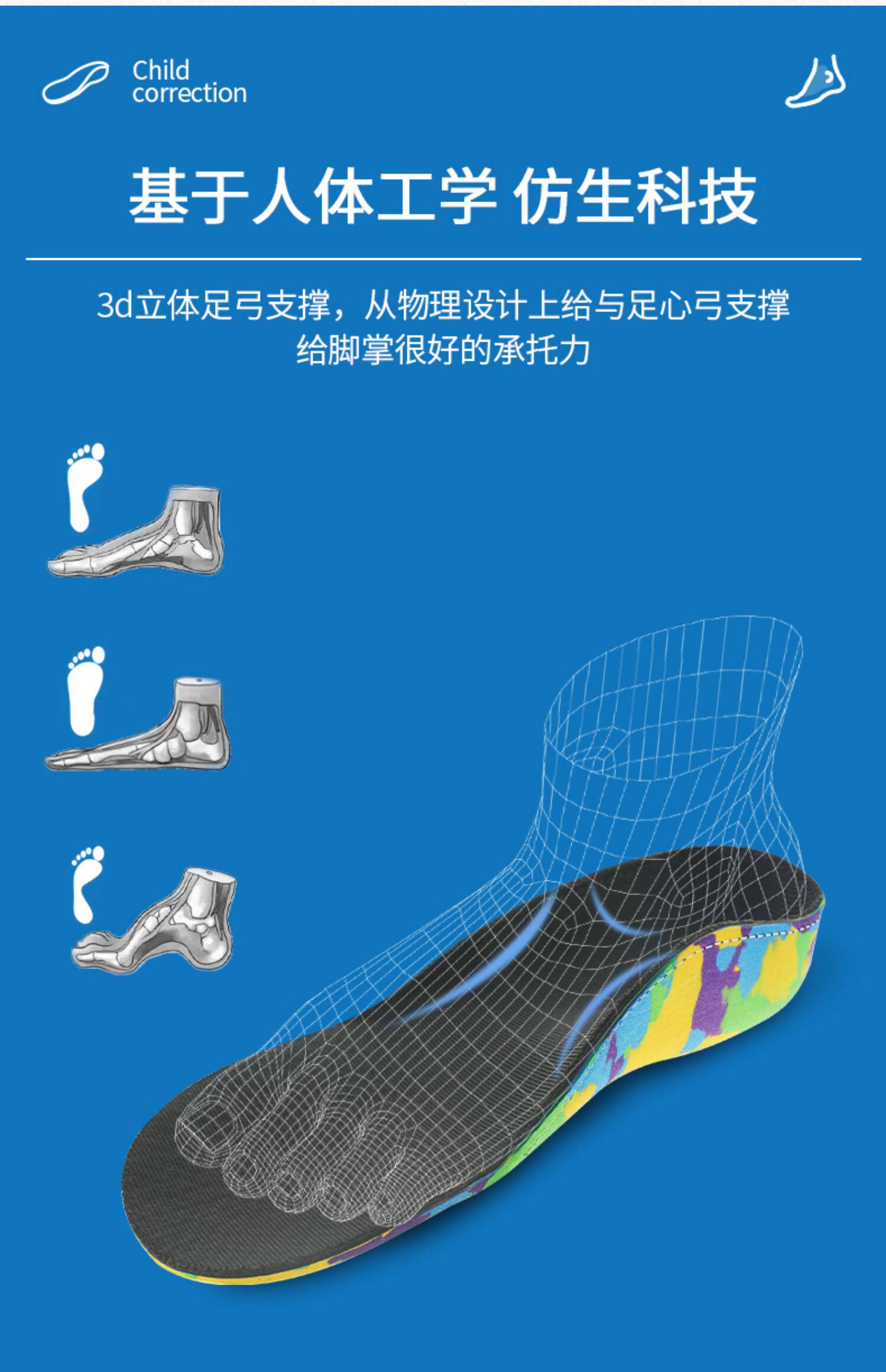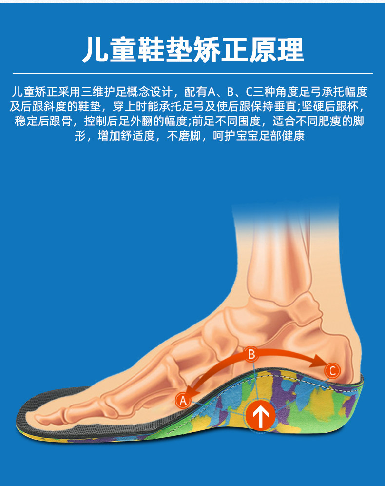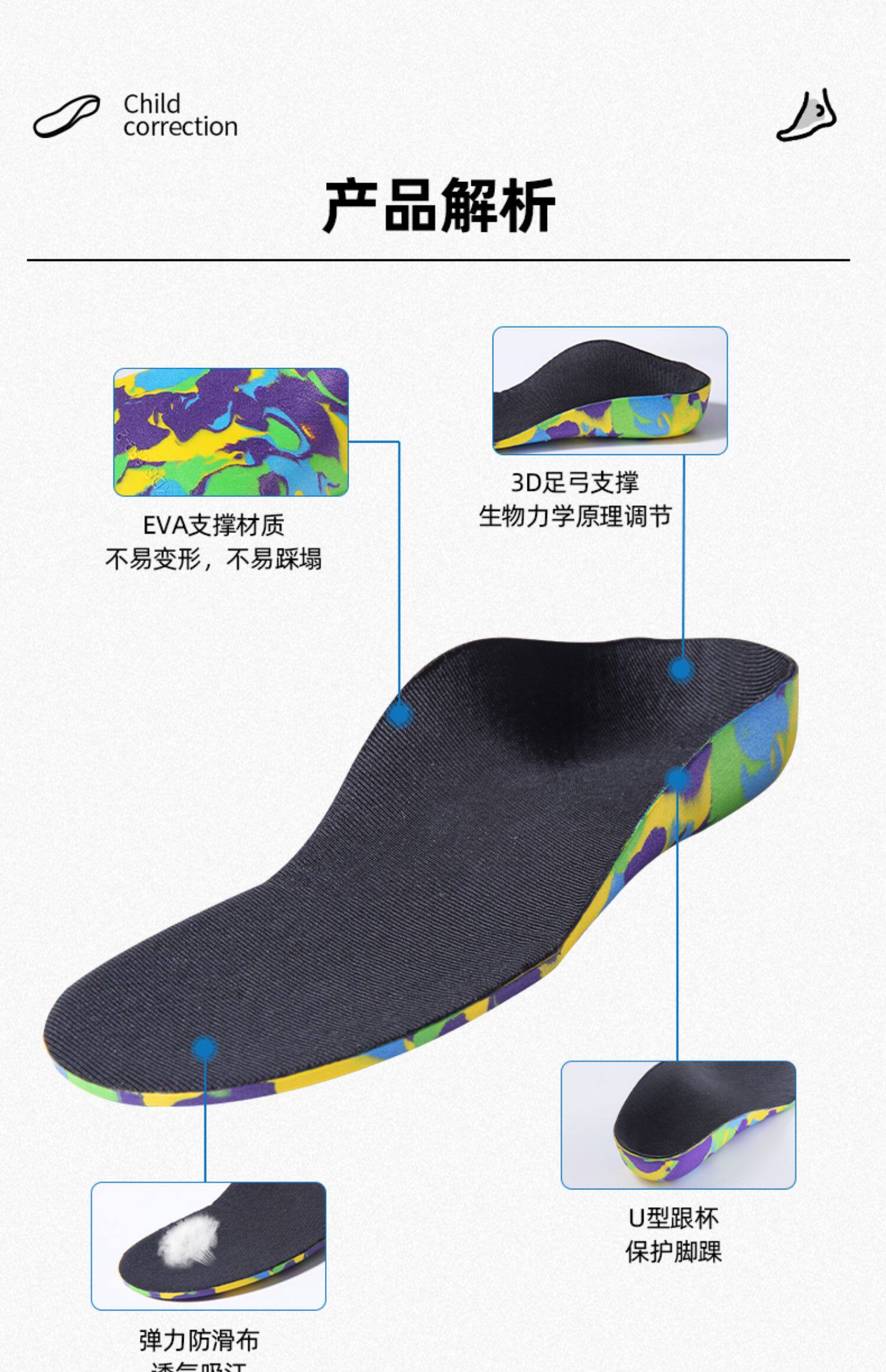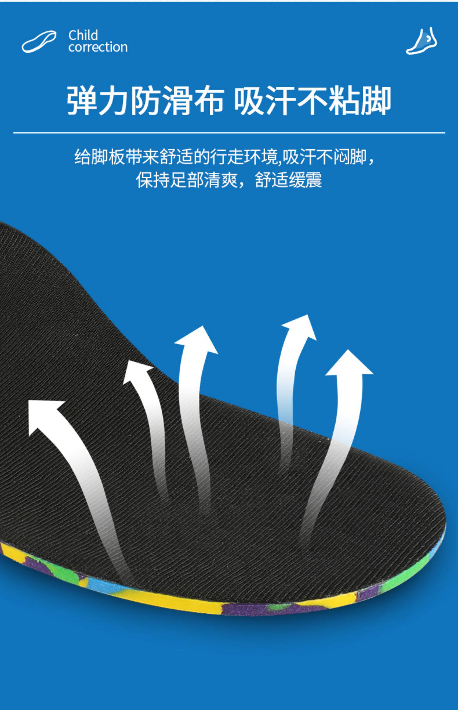 Детские коррекционные стельки с плоскими ногами сплющены и охватывают, а внутренний и внешний восьми -символ -валик поддерживает арку.