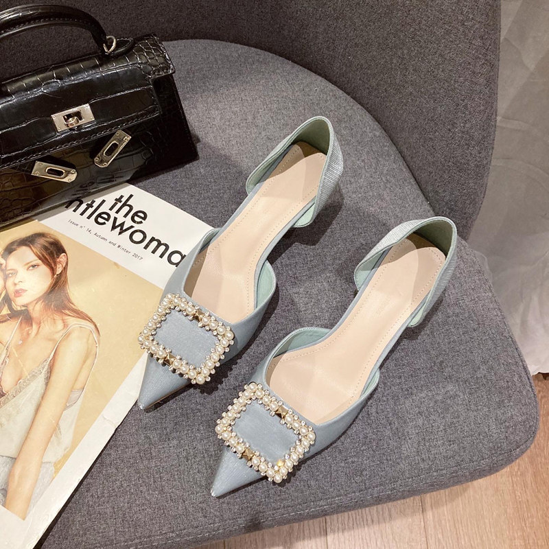 Атласные вечерние туфли в европейском и американском стиле с жемчугом, нежные женские туфли на высоком каблуке с острым носком и полые туфли на шпильке с мелким горлышком