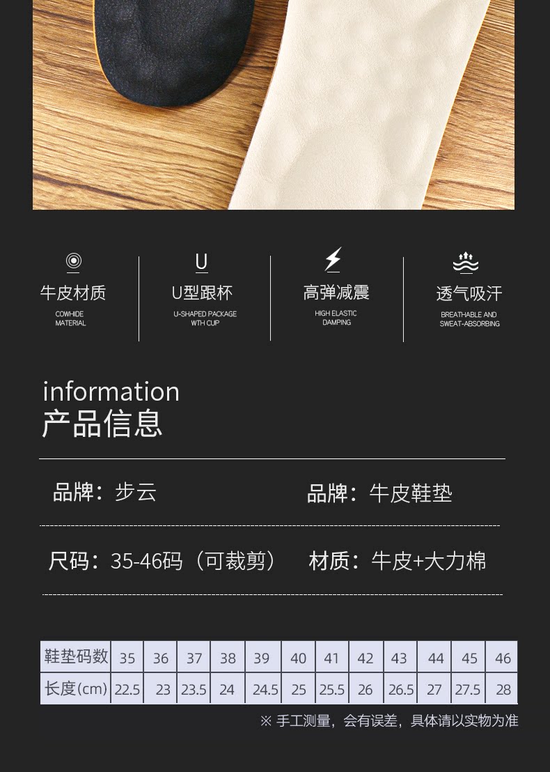 步云 Кожаные дышащие спортивные амортизирующие комфортные летние стельки подходит для мужчин и женщин, воловья кожа, впитывают пот и запах, из натуральной кожи