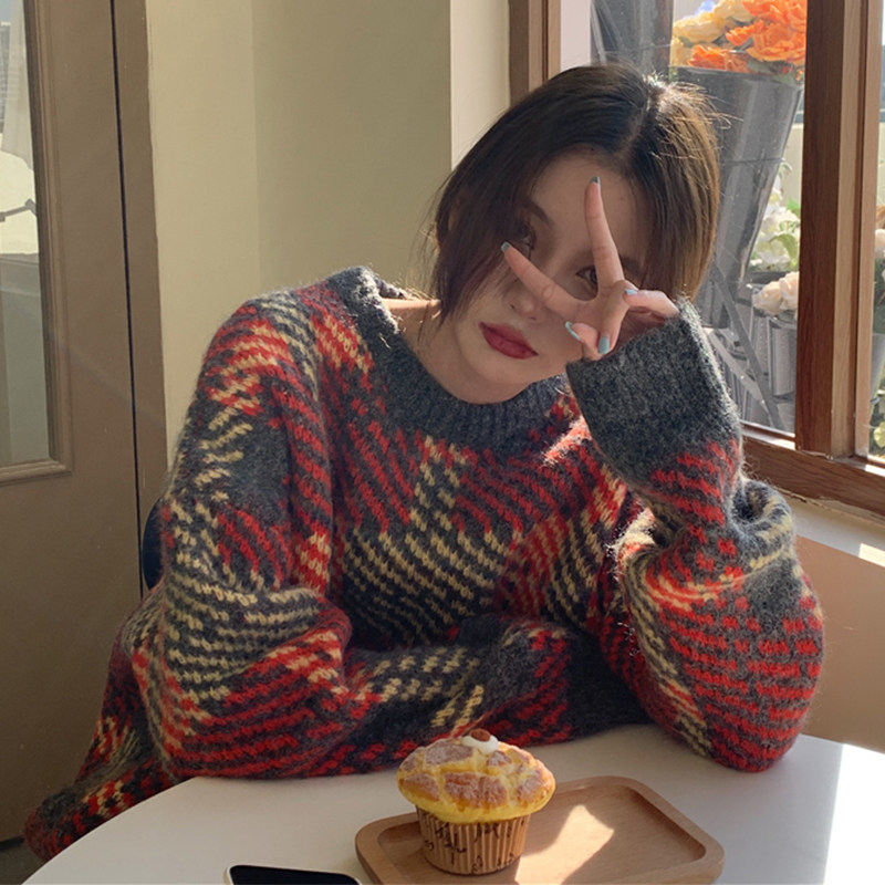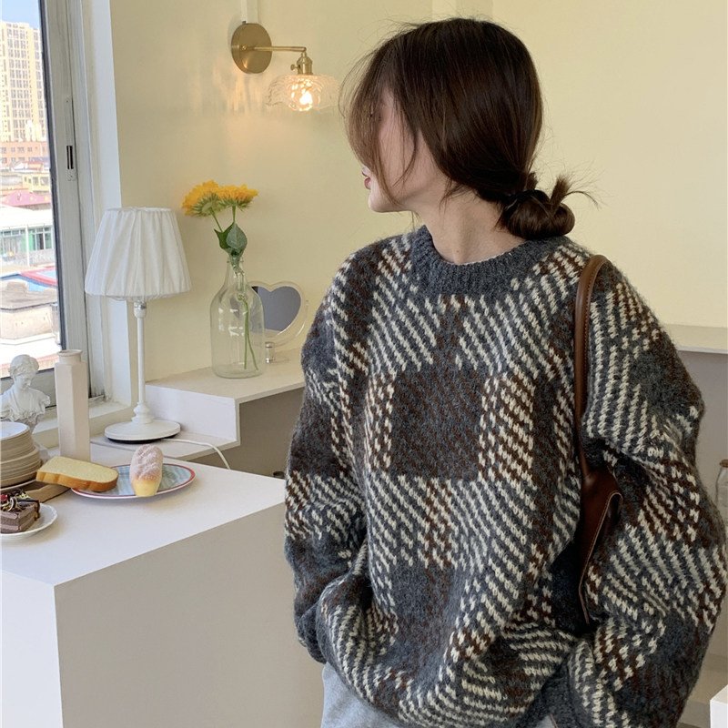 Демисезонный ретро трикотажный свитер, джинсы с начесом, лонгслив, нарукавники, в корейском стиле, 2024 года