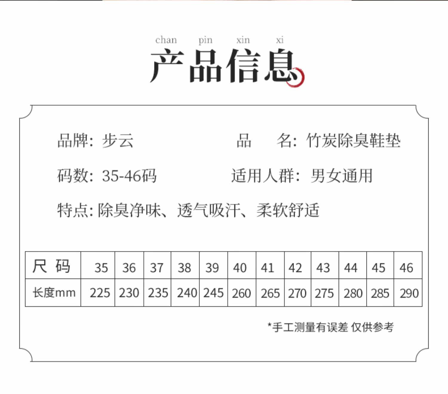 步云 Дышащий спортивный амортизирующий дезодорант, комфортные тонкие стельки, впитывает пот и запах, мягкая подошва