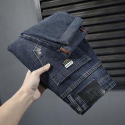 Мужские элитные демисезонные прямые свободные джинсы, осенние штаны, свободный прямой крой, увеличенная толщина, в американском стиле