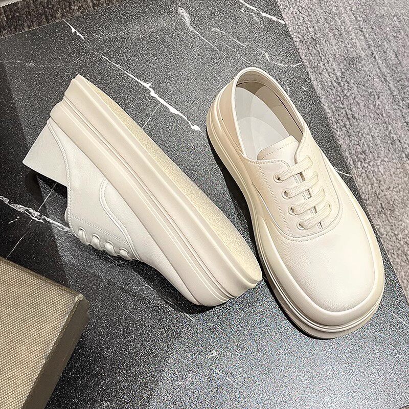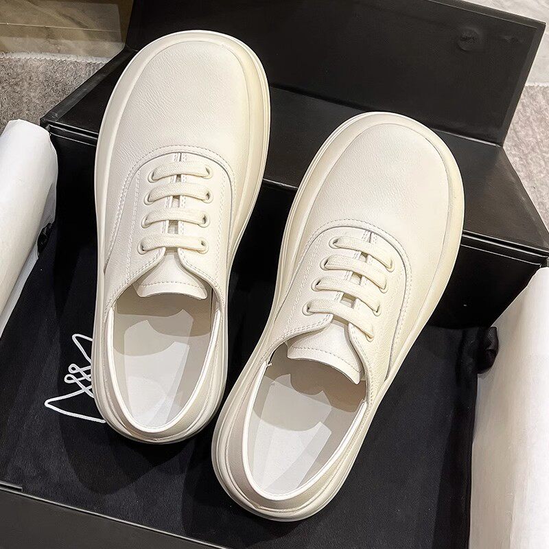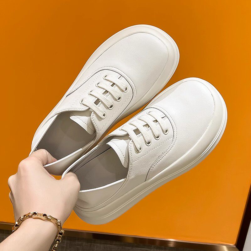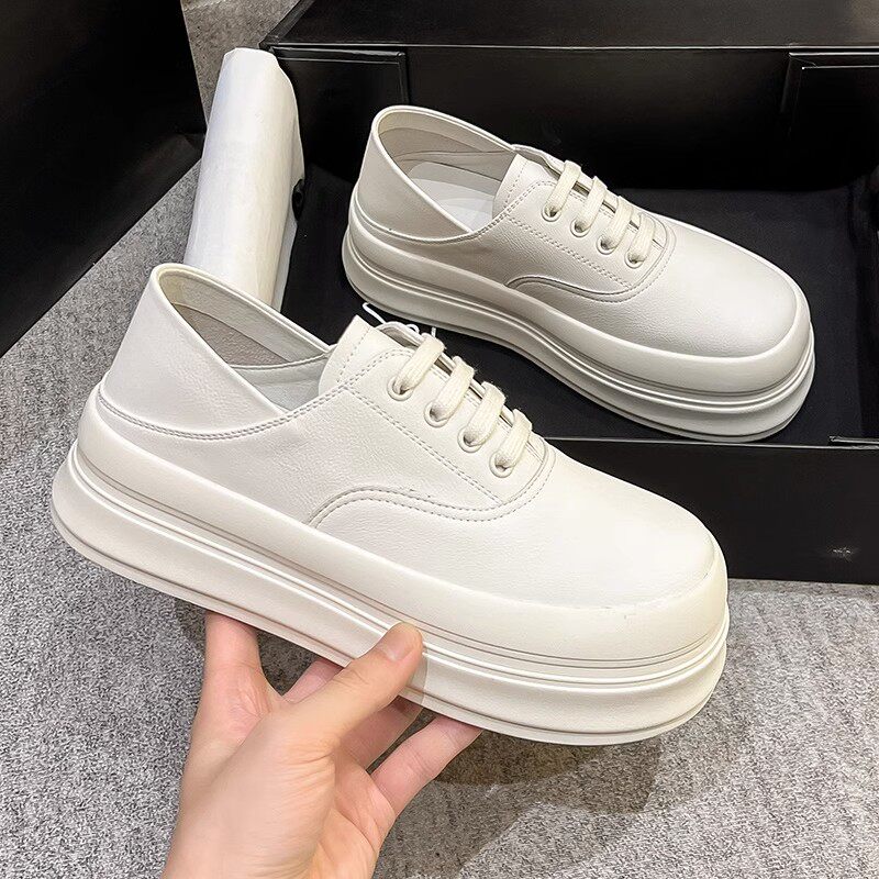 Глупые спортивные круглые туфли с белыми туфлями женская осень и весенняя дерма, дышащие толстые подошвы, универсальные два туфли ноги