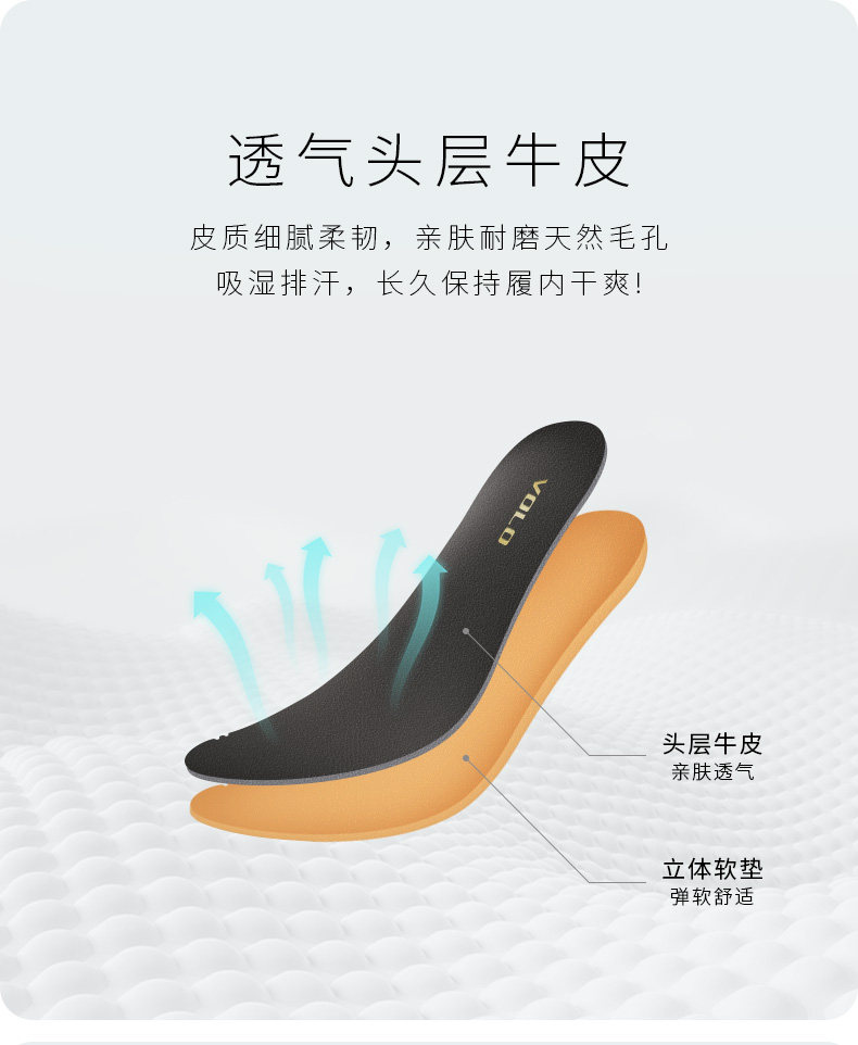 VOLO/犀牛 Спортивные кожаные дышащие комфортные амортизирующие стельки, впитывают пот и запах, мягкая подошва