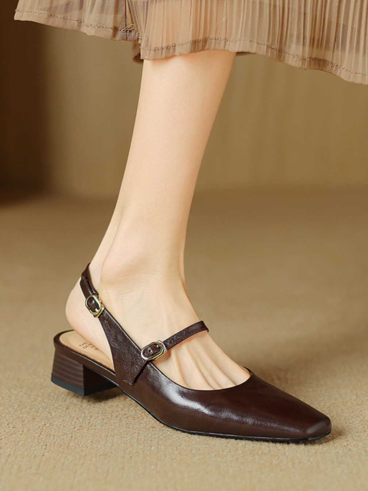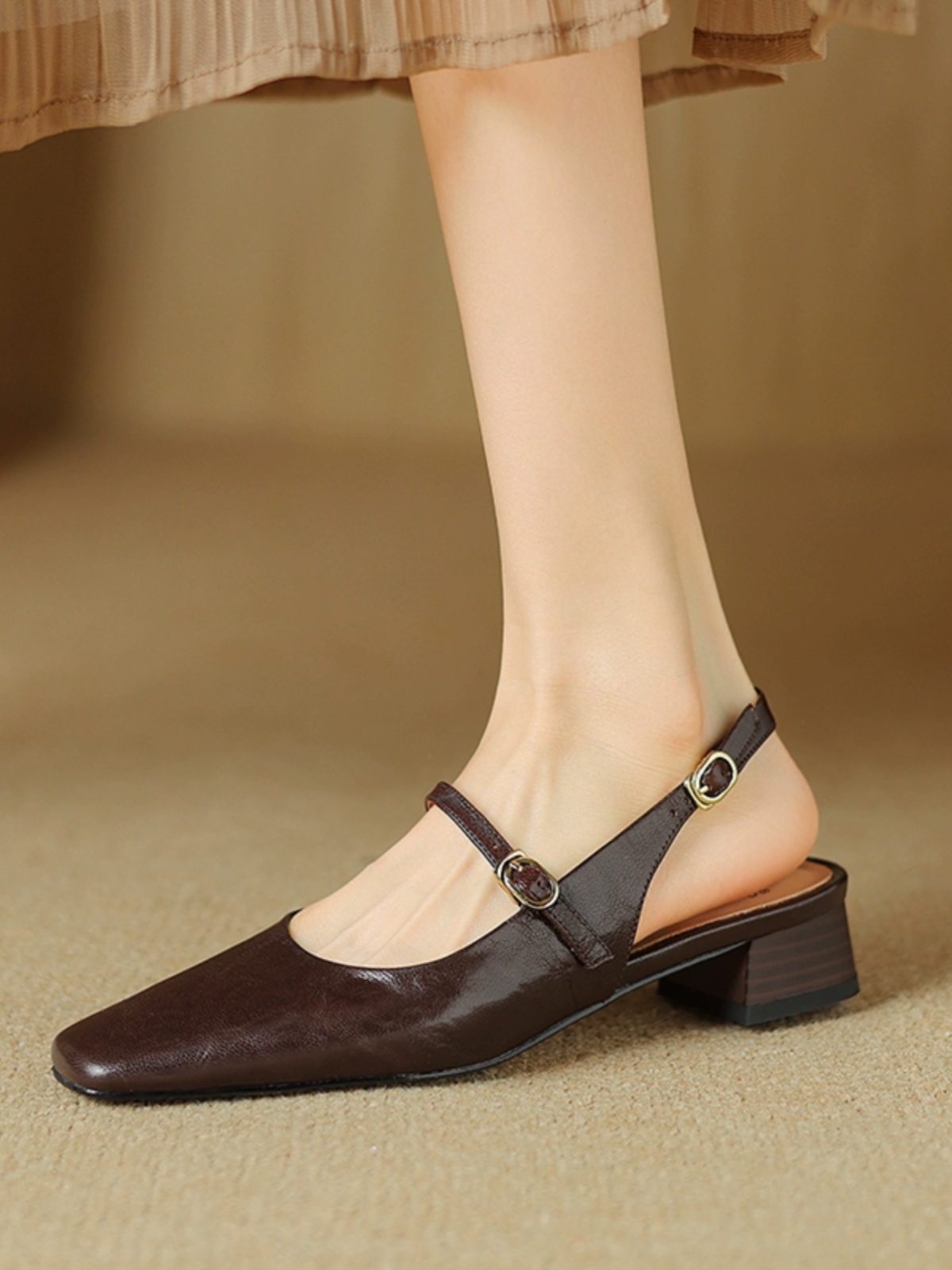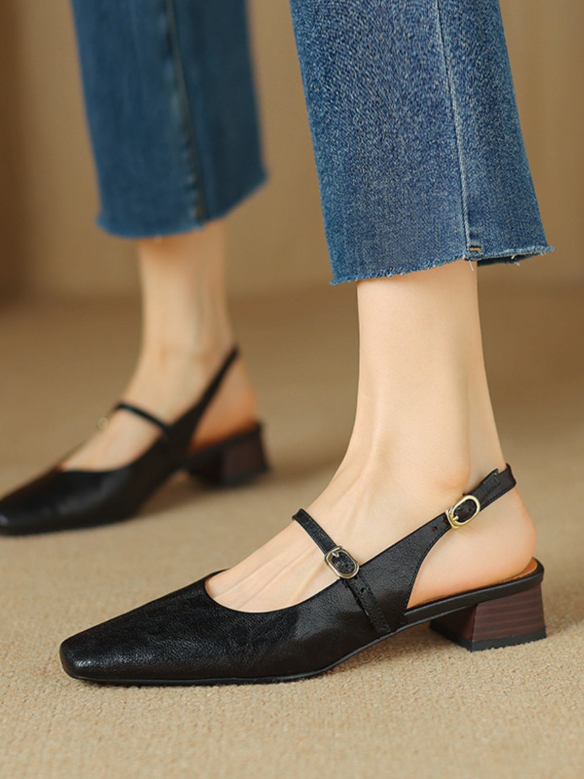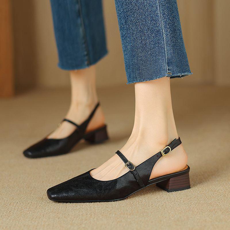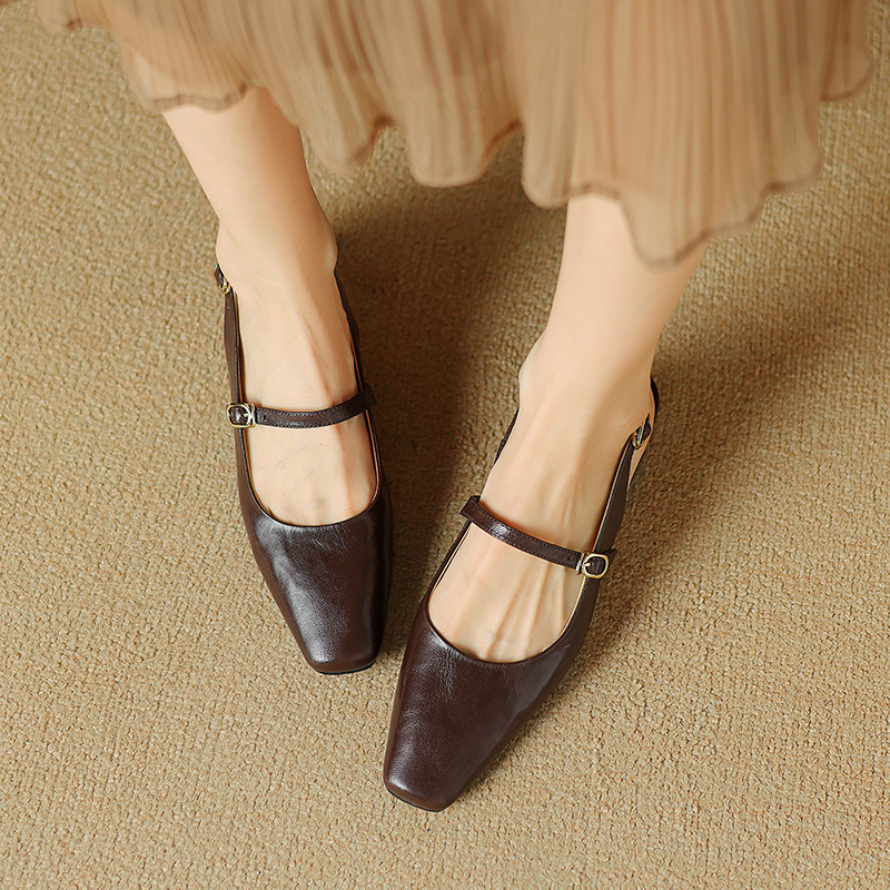 【意大利】René Vanvilla Женственно ⭐Толстый каблук 3см, пряжка из овчины, классная для девочек.