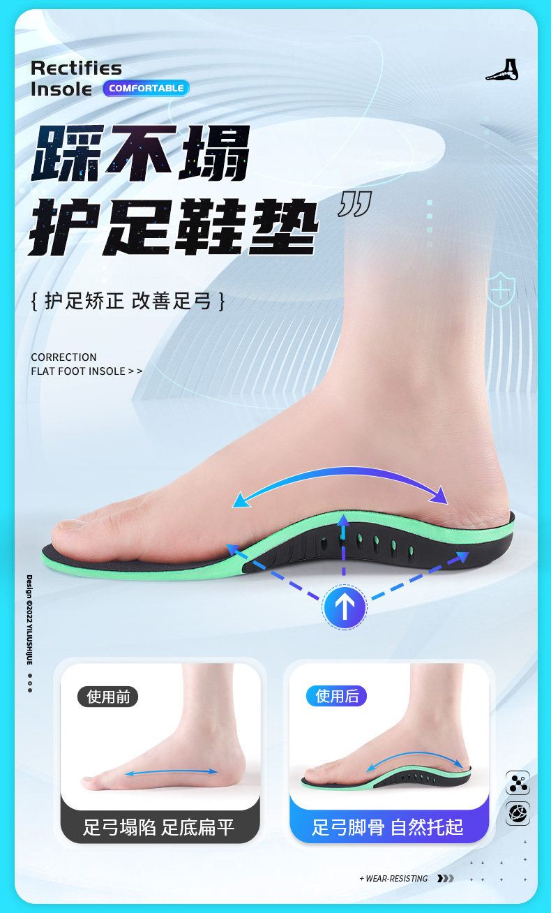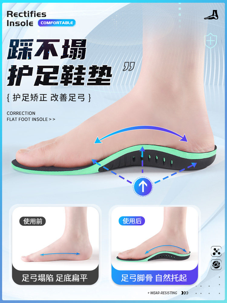 Ноги с ногами поддерживают ноги с ножными подушками с плоской стоп -специфической ортопедической стелькой, горизонтальный коллапс -коллапс -ортопед, не уставшие ноги удобные
