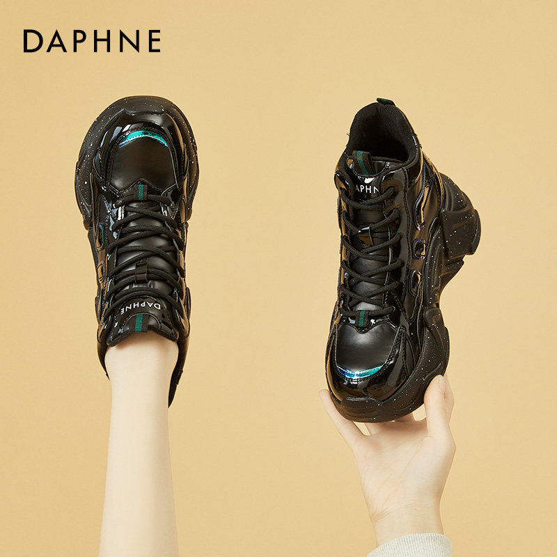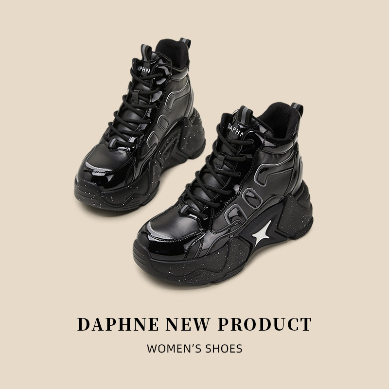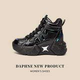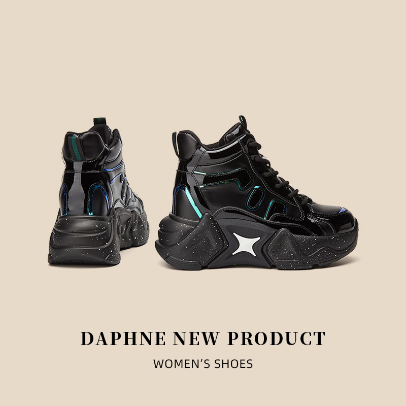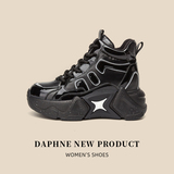 Дафна увеличивает рост на 8 см ~ блестящие черные женские туфли для папы на толстой подошве в модных уличных женских туфлях с высоким берцем