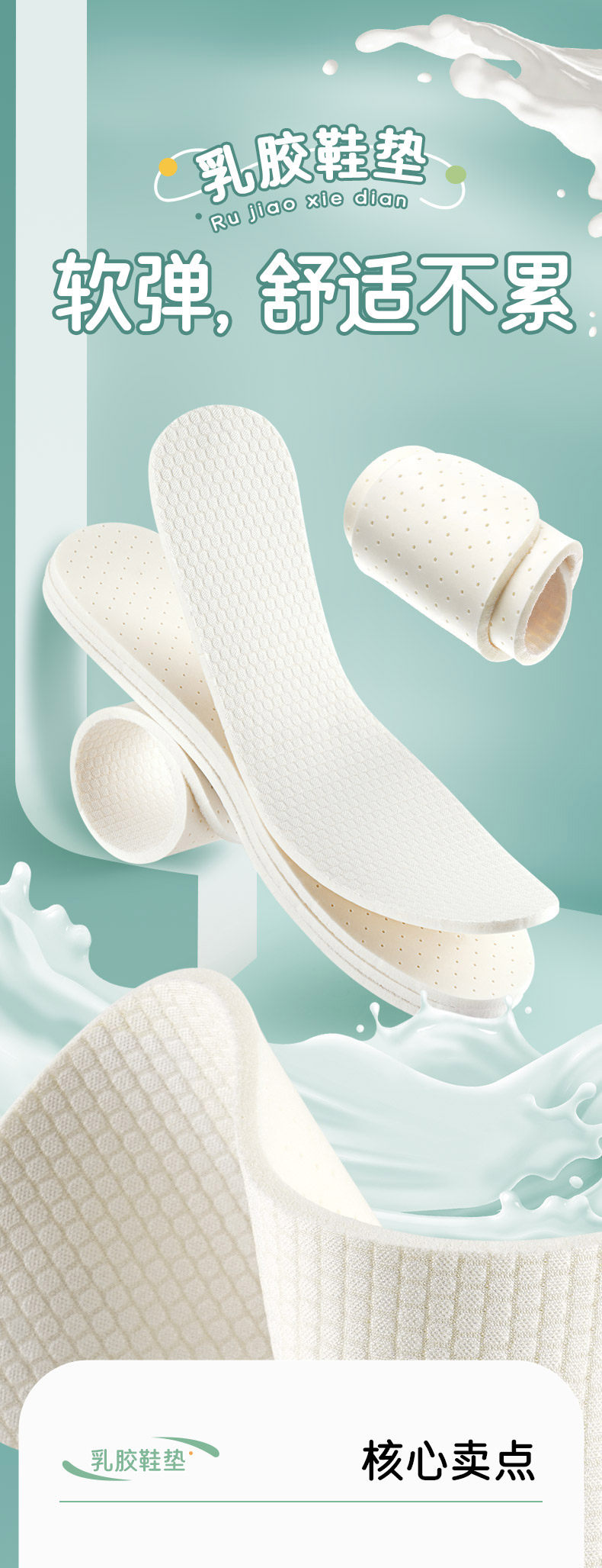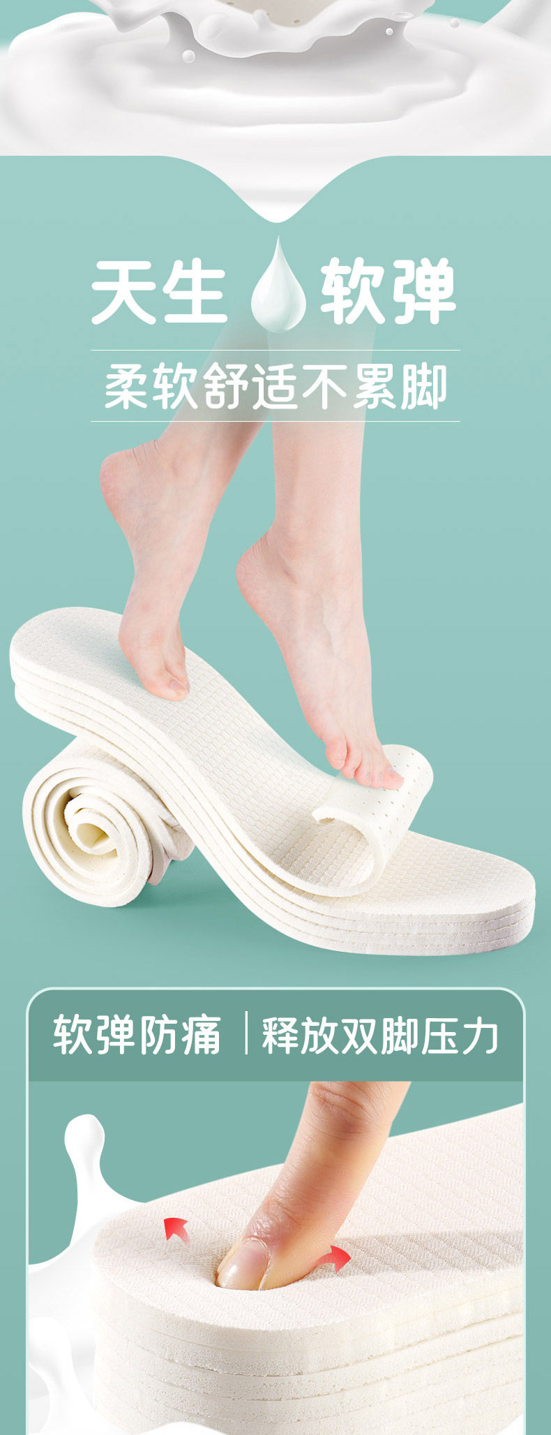 Латексные комфортные противоболевые стельки, мягкая подошва, впитывают пот и запах