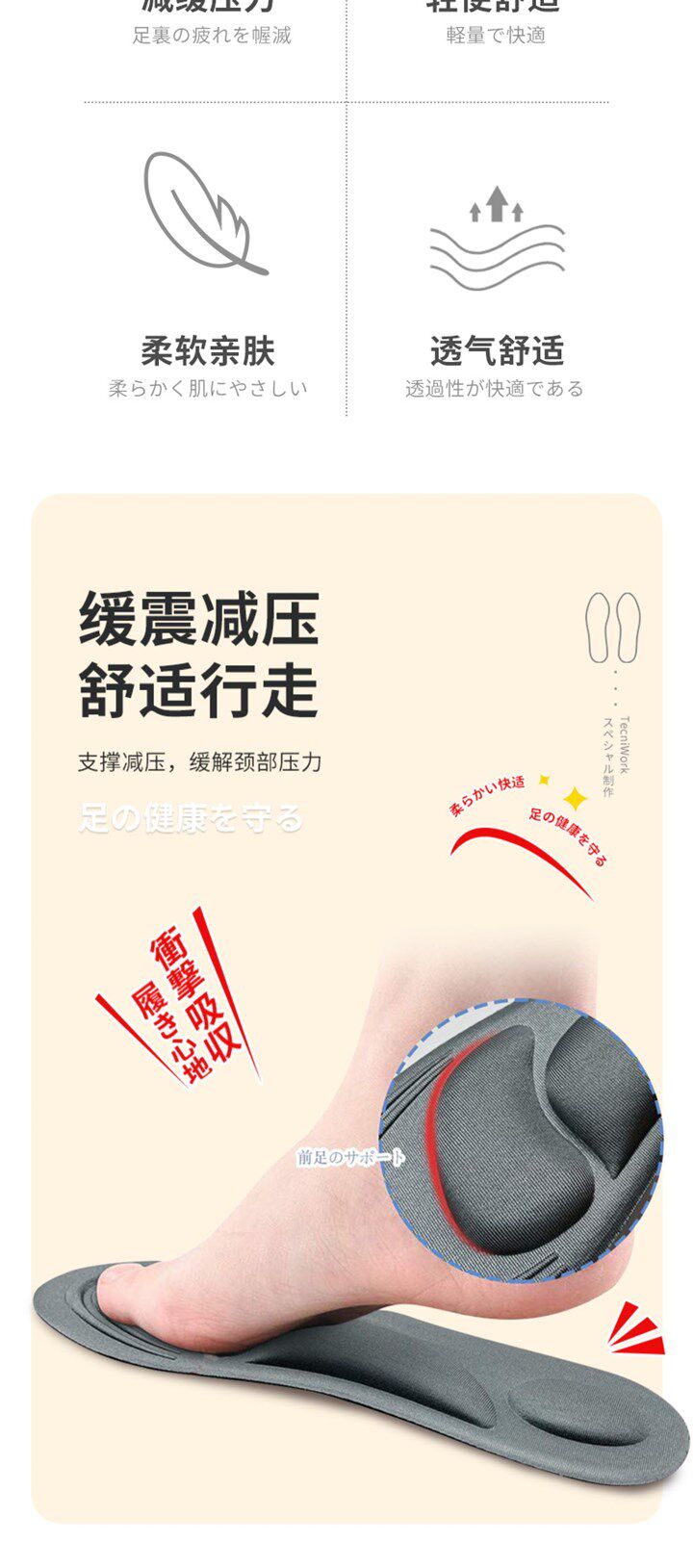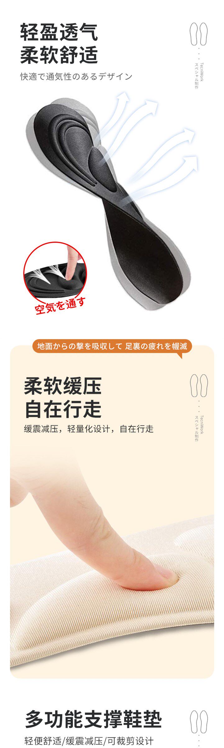 Японские комфортные спортивные стельки, амортизирующий массажер, мягкая подошва, впитывают пот и запах