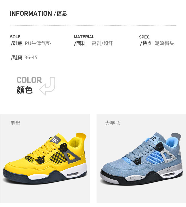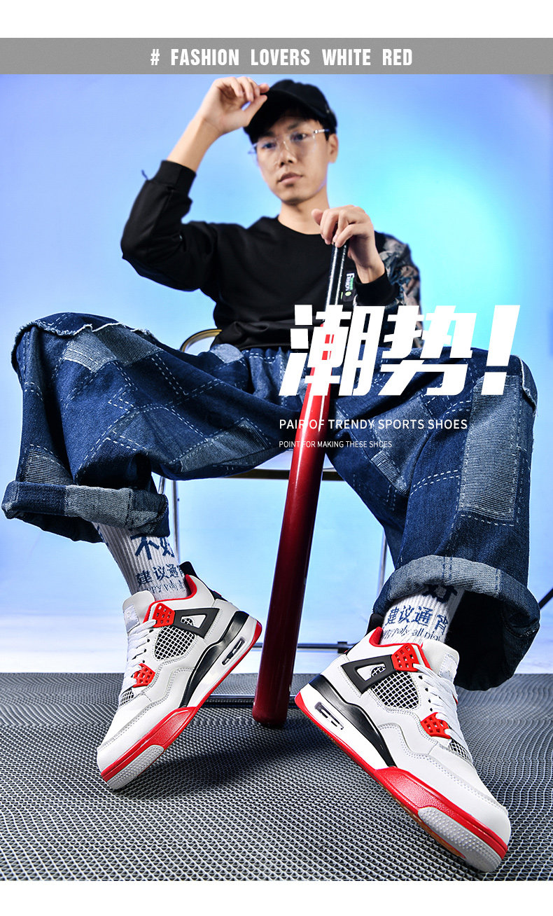 [Скидка 30% на площадь] Классические баскетбольные кроссовки AJ4, спортивная обувь средней высоты, кожаная воздушная подушка, амортизирующие и износостойкие мужские и женские кроссовки.