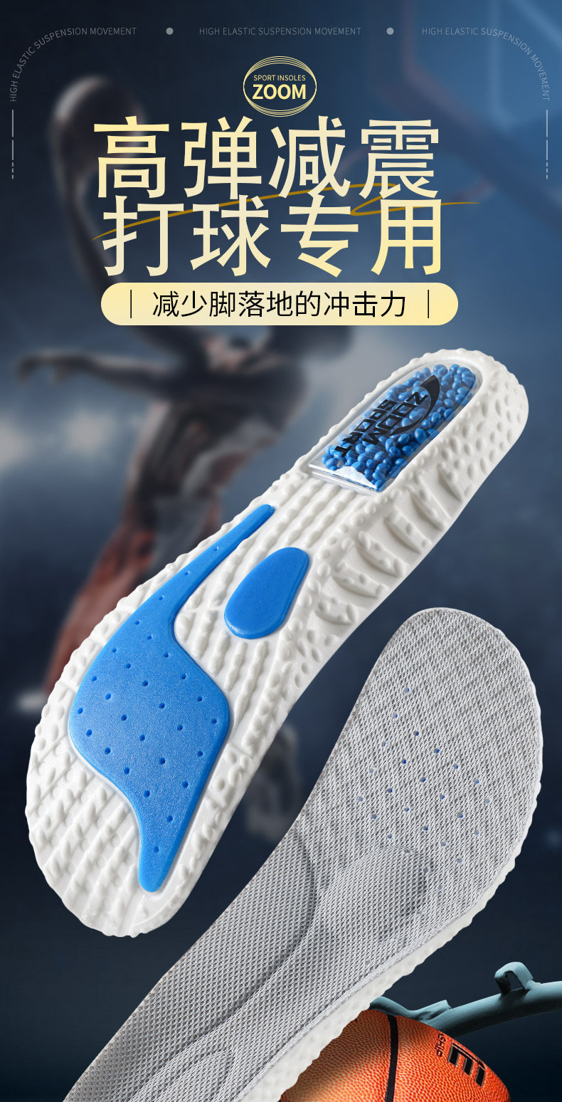 Стельки, амортизирующий дышащий баскетбольный кушон, увеличенная толщина, впитывают пот и запах, для бега