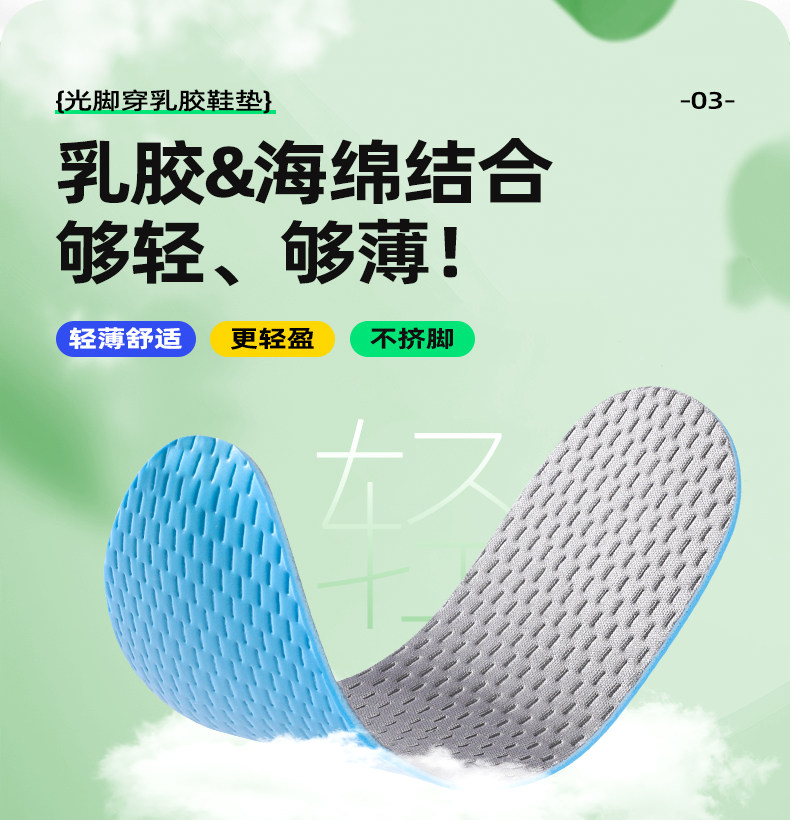 Мужские латексные ультратонкие нескользящие стельки, впитывают пот и запах, 2mm