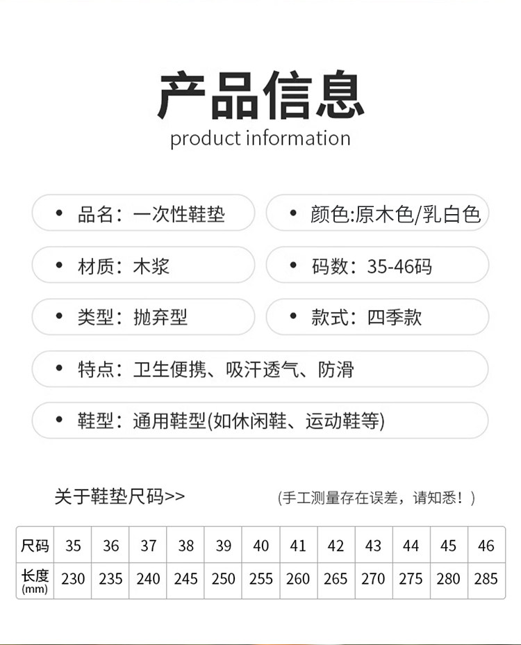 - 【10 пар】 одноразовое поглощение потающего стельки из деревянной пульпы