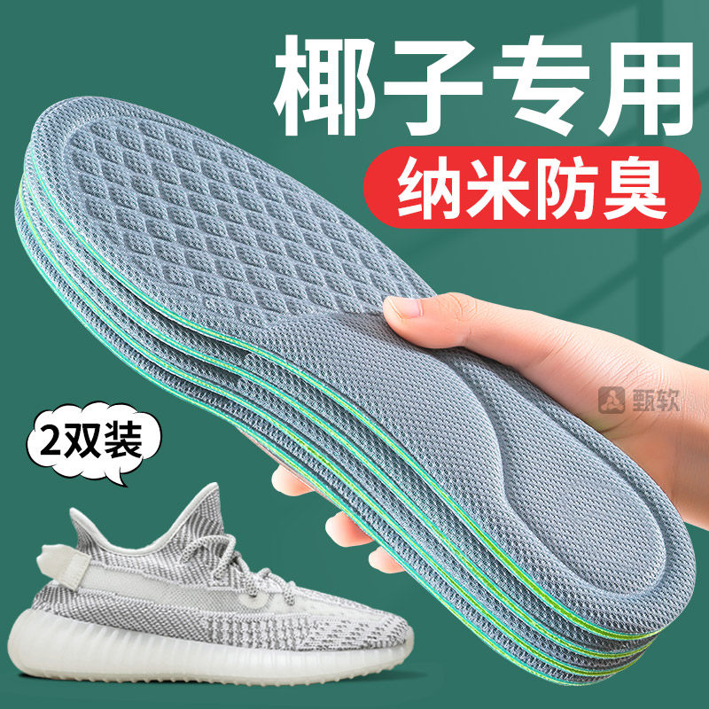 Специальная нано-стелька с кокосом и защитой от запаха для мужчин, впитывающая пот, дышащая, мягкая подошва, удобная мужская устойчивая к поту защита от пота yeezy350