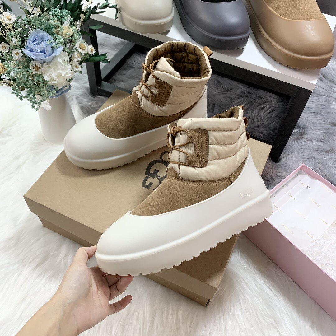 Покупка зимних сапог угги, новинка 2024 года, зимняя женская обувь, непромокаемые двойные ботинки до середины икры на шнуровке, мужская обувь 0849