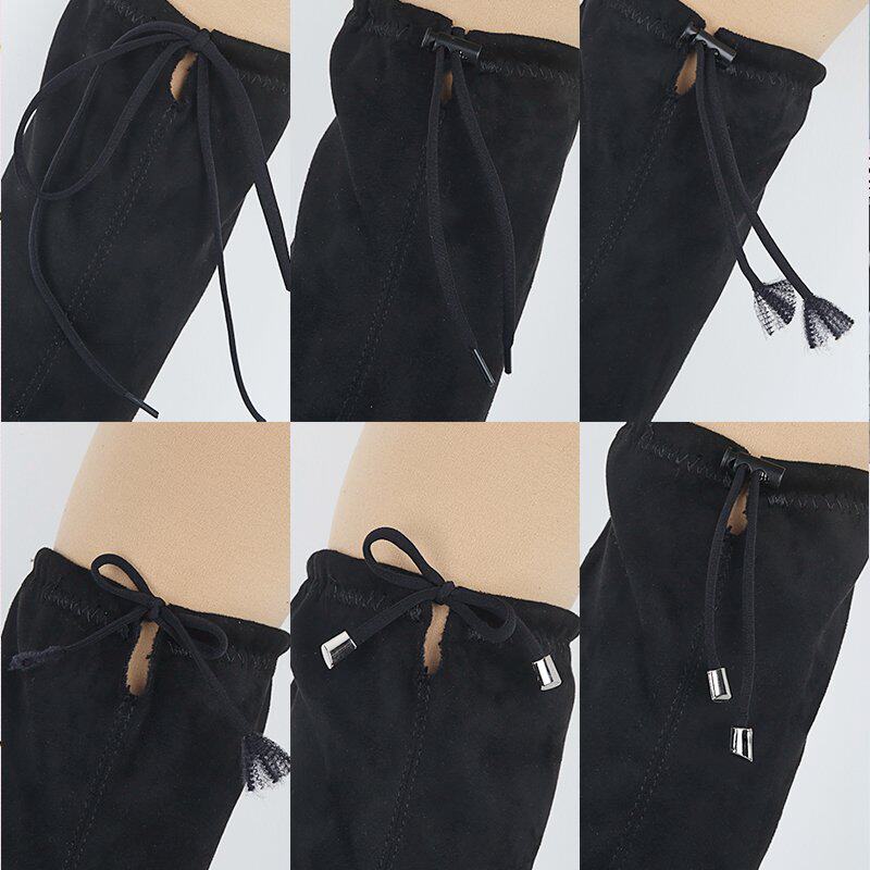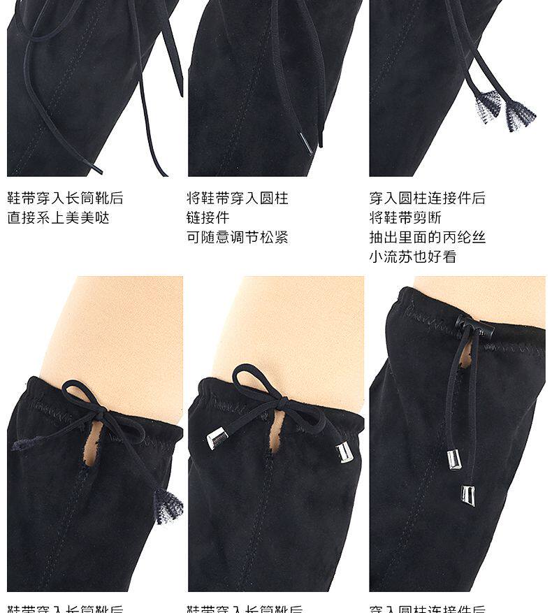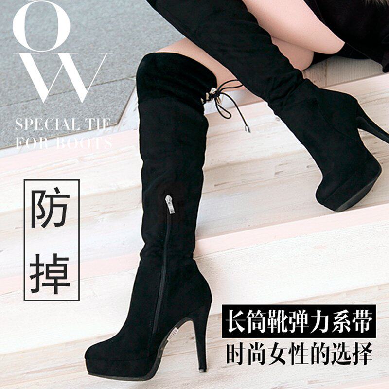 Замшевые высокие сапоги, ботинки, черный шнурок-держатель, шнурки
