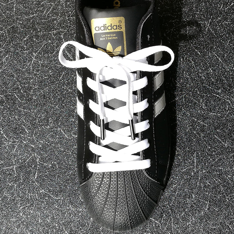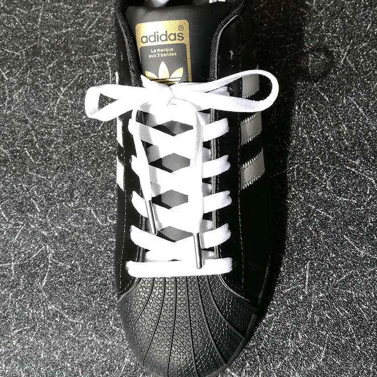 Подлинная плоская металлическая головка плоские шнурки/140 см черно белый+золотая головка Adi Clover Shell применима