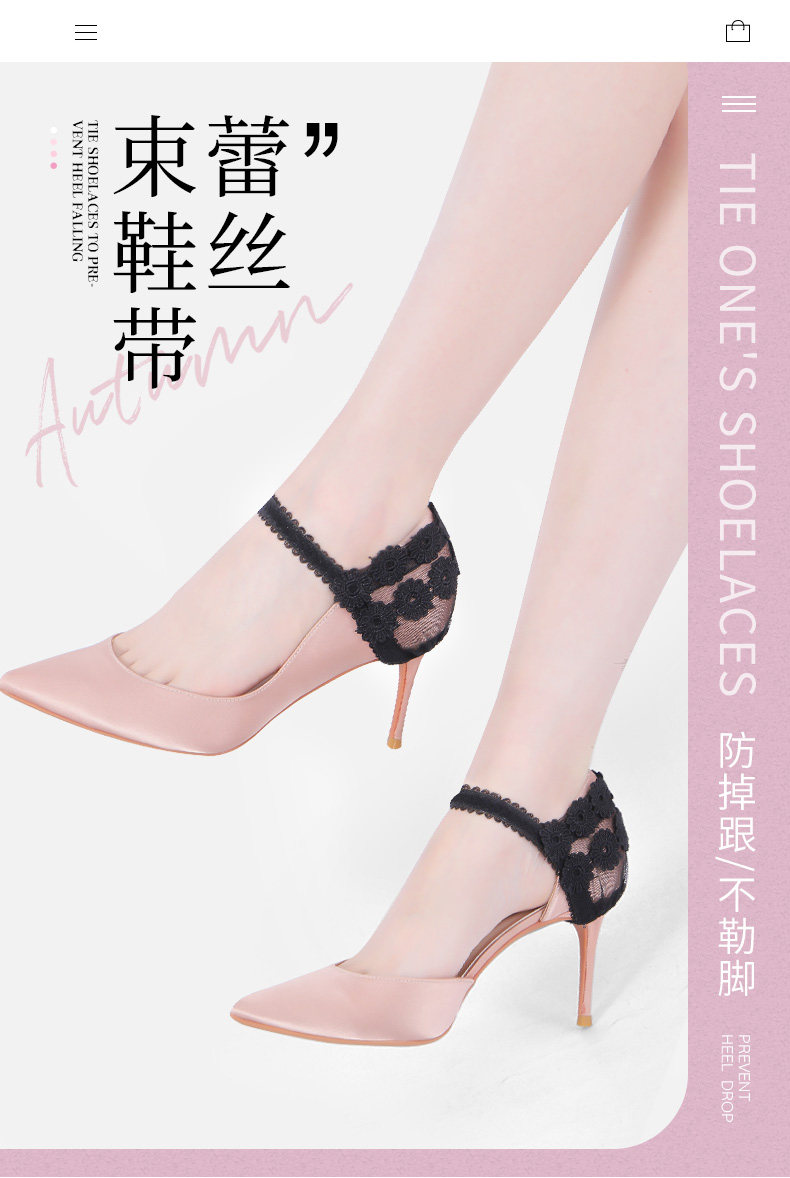 Туфли на высоком каблуке, сексуальный модный черный шнурок-держатель, шнурки, кружевное платье, в цветочек, фиксаторы в комплекте
