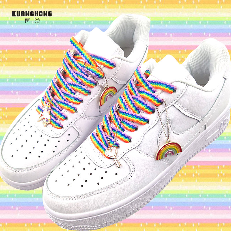 Nike Air Force 1, радужные шнурки подходит для мужчин и женщин, тканевая белая обувь