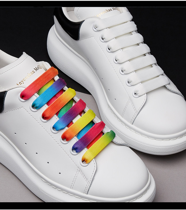 Оригинальные шнурки, белая радужная белая обувь подходит для мужчин и женщин, градиент