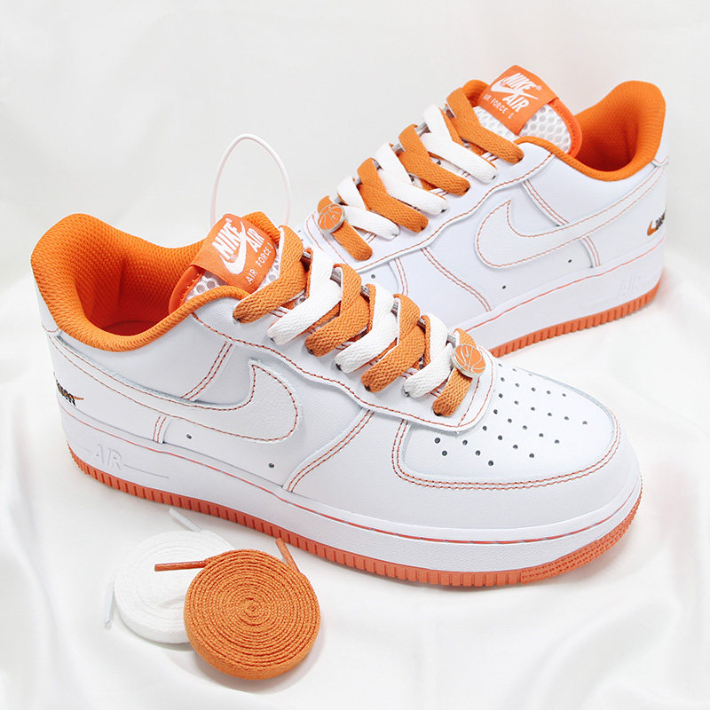 Nike Air Force 1, оранжевые низкие светоотражающие шнурки