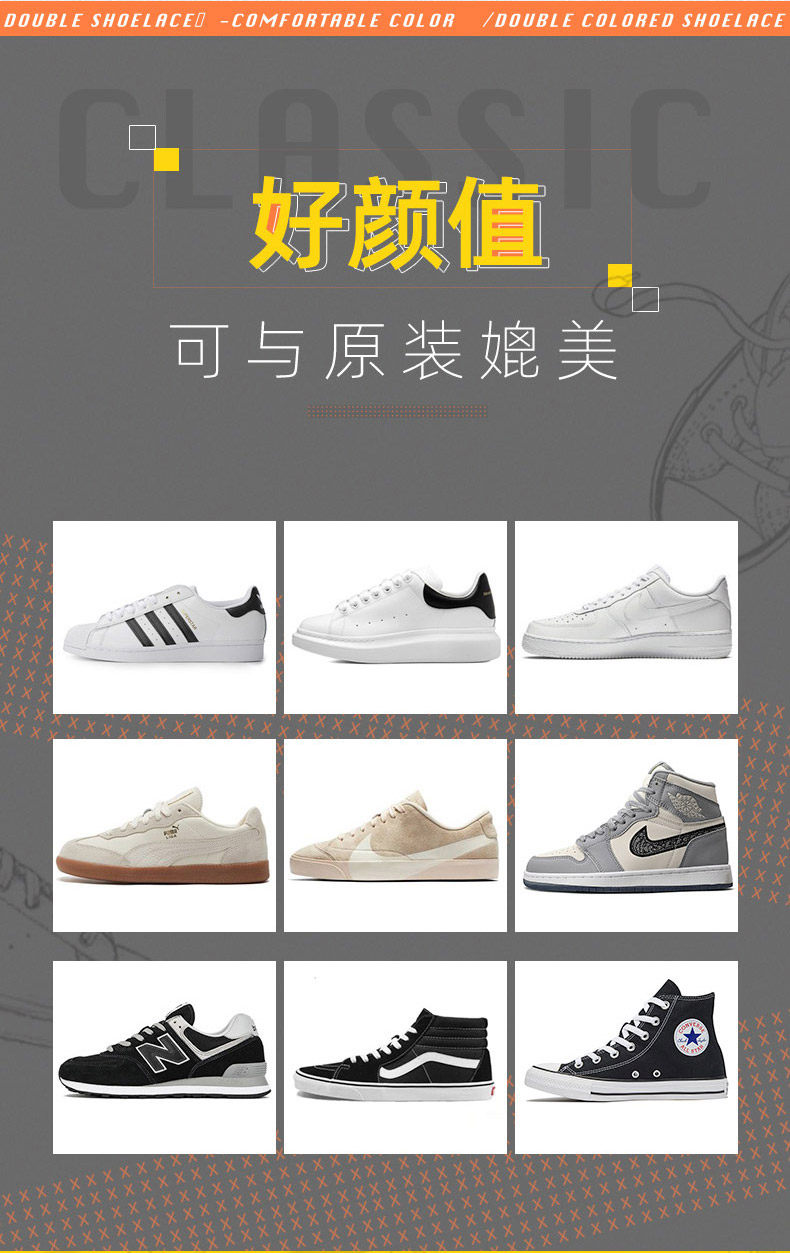 Шнурки подходит для мужчин и женщин, спортивная нескользящая классическая универсальная белая обувь