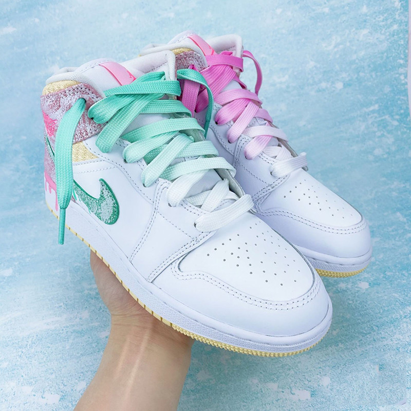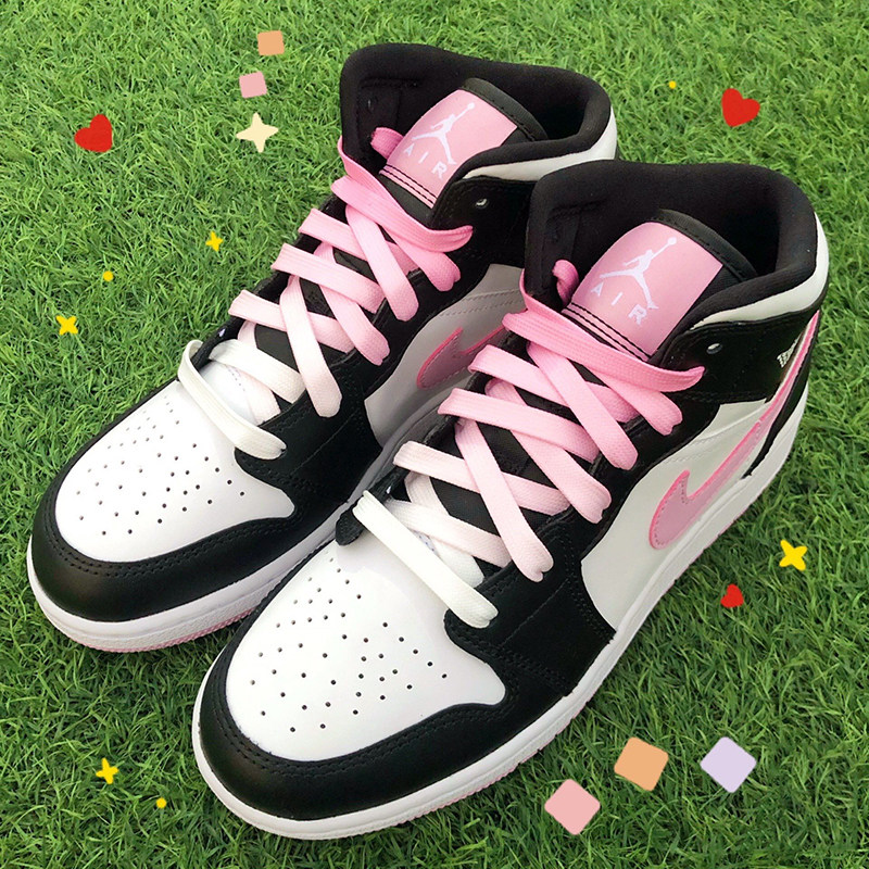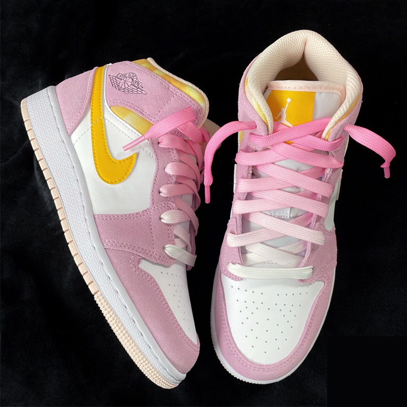 Air Jordan 1, Nike Air Force 1, конверсы, розовые тканевые белые шнурки, градиент
