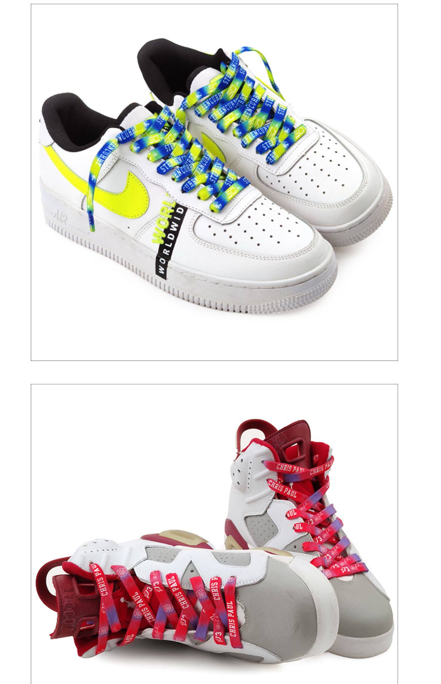 | Цвет: | Желтые и фиолетовые шнурки Коби Брайанта с тай-дай, Джеймс желто-фиолетовые шнурки тай-дай, Пол Красный Фиолетовый Тай Дай, Шнурки цвета карри желтого и синего цвета тай-дай, Уэйд черно-красный краситель для галстука, Irving мятно-зеленые шнурки, Серые шнурки Durant тай-дай, Красно-белая краска для галстука Harden, Розово-черные и красные шнурки тай-дай, Леонард красно-фиолетовый галстук-краситель, Белые шнурки, Черные шнурки |