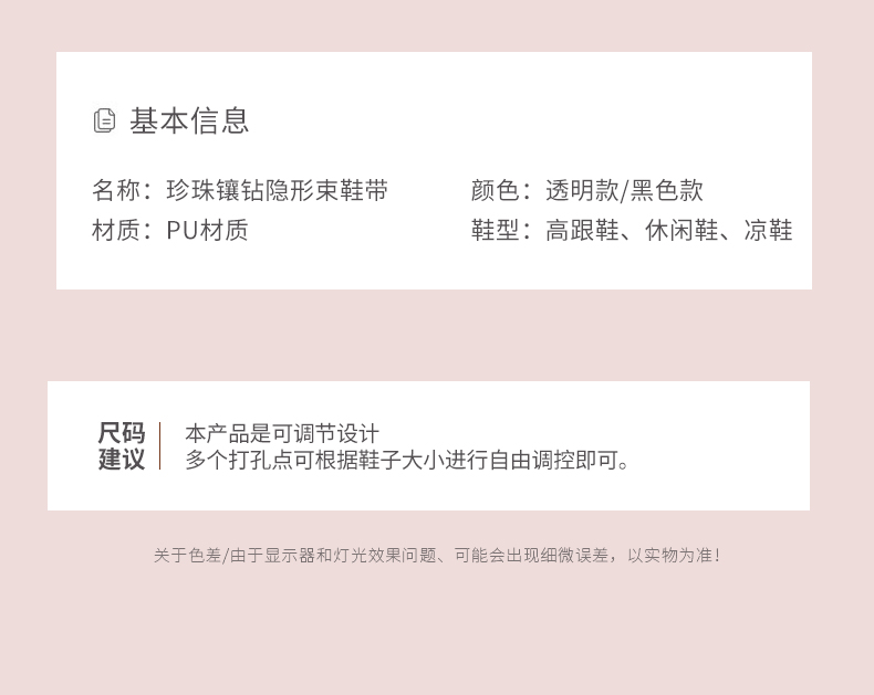 • 1 пара шнурков с жемчужной цепочкой, прозрачные