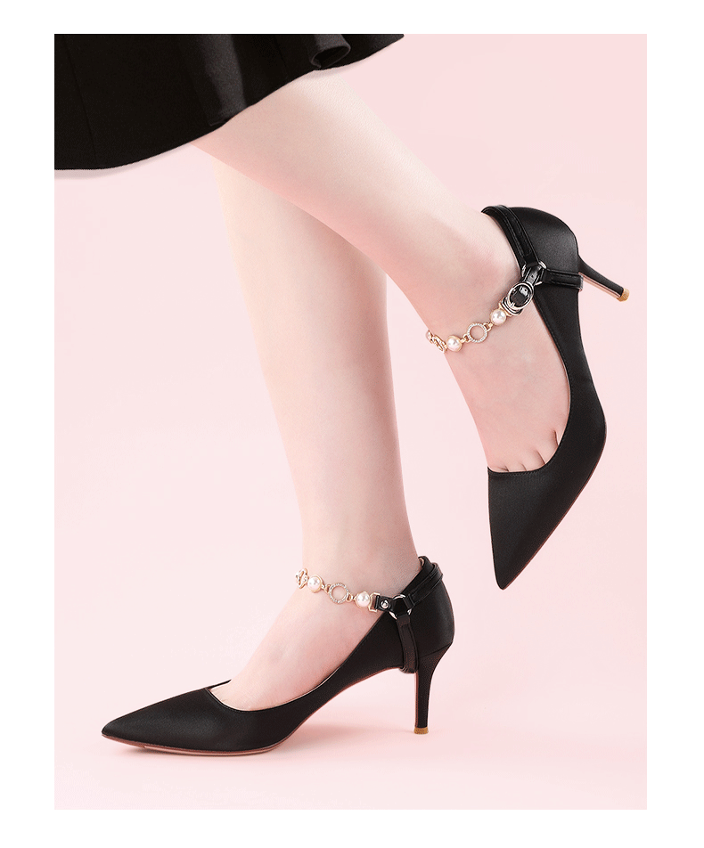 • 1 пара шнурков с жемчужной цепочкой, черные